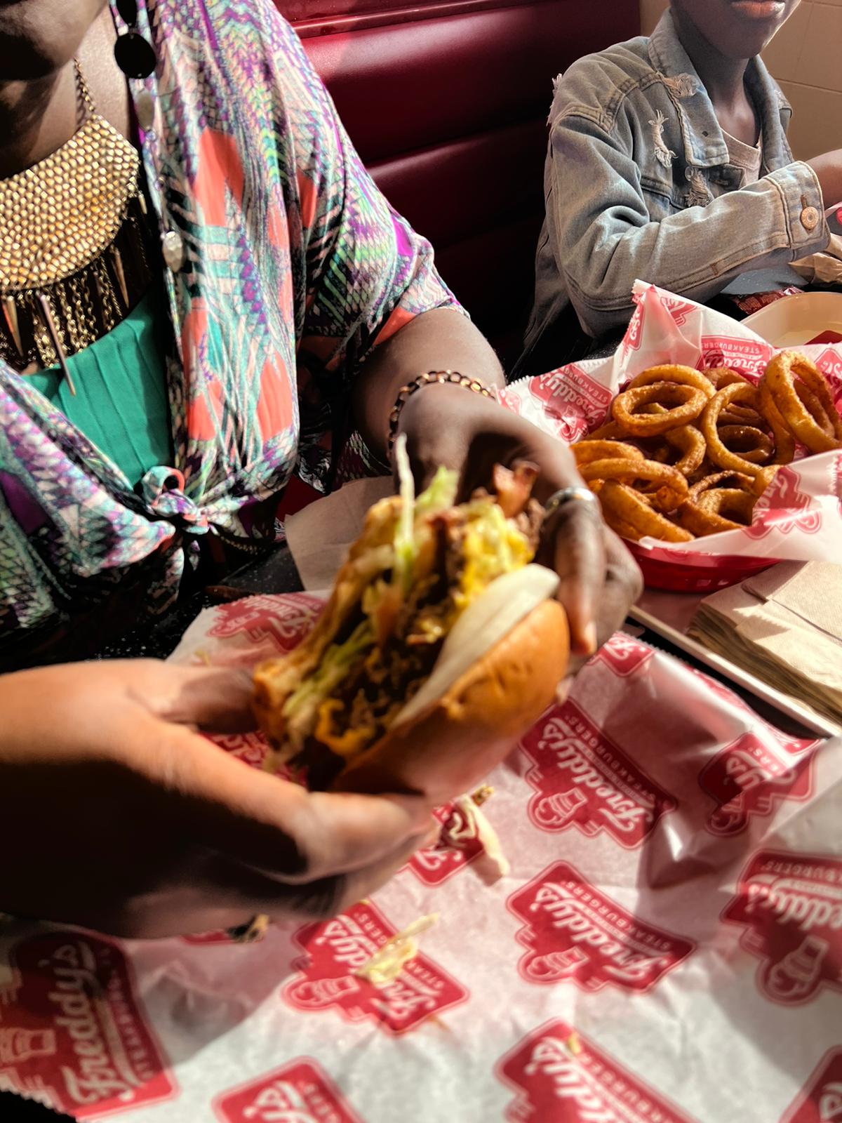 Read moreI was very pleased to find that we have Freddy's near us since relocating to this area. However, I was very, very unhappy with the conditions once inside the location just off Sugarloaf/Peachtree Ind. While the service was Awesome, the condition/cleanliness was the worst! When going inside to "dine in", I noticed only one or two customers already seated and eating. There was food and other debris on the floor and after placing our order we tried to sit at a table only to find there were none clean. I asked for something to use to clean a table myself, but the young lady came out to clean it and continue to apologize for the mess. Ordering our food was another ISSUE. None of the menu monitors were working. I had to change orders due to was items being unavailable. Unable to get tomatoes on my sandwich and almost no onions because "the morning shift" didn't prep for the next shift. After eating our disappointing combo meal, we still decided to get our favorite frozen treat. Yet again, no strawberries for my large Strawberry Sundae. I asked why no proper ingredients for basic orders when there was a Sprouts grocery store walking distance from the restaurant. After leaving Freddy's, we drove through the plaza to see what other stores and services were in that area only to see the Manager on duty from Freddy's walking to Sprouts. Yes, I plan on going back to this Freddy's with hopes that they get it right or I will NOT go back to that location if faced with the same. Again, the Snellville's Freddy's...