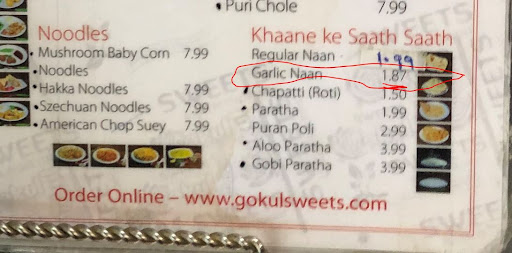 There is an unfortunate trend with Indian restaurants in US that the food and service both deteriorates as the restaurant becomes more famous and successful. Unfortunately, GOKUL SWEETS in Duluth GA is no different. We have been regular customers of this place and have recommended many Indian and American friends to this place over the years. We have been noticing that quality of food has been going down, staff had become a lot ruder and more careless and wait time was increasing but we were still supporting this Indian business. However, what happened today is forcing me to write this review and we will not be returning to Gokul Sweets ever. As usual in this COVID environment I ordered ahead for pick-up and my mistake was that I did not ask to confirm prices while ordering as I was ordering my usual. When I arrived at the shop to pick up food the bill was almost 30% more than usual. When I asked, they said they charged $3/garlic naan even though their website and menu in the restaurant said price to be $1.87/ naan. Their excuse was that this is the new price just did not get time to update website/ menu. Charging more than advertised price is illegal. I can no more be buying from a business that is not only rude, bad in service, with degrading food quality and now price...