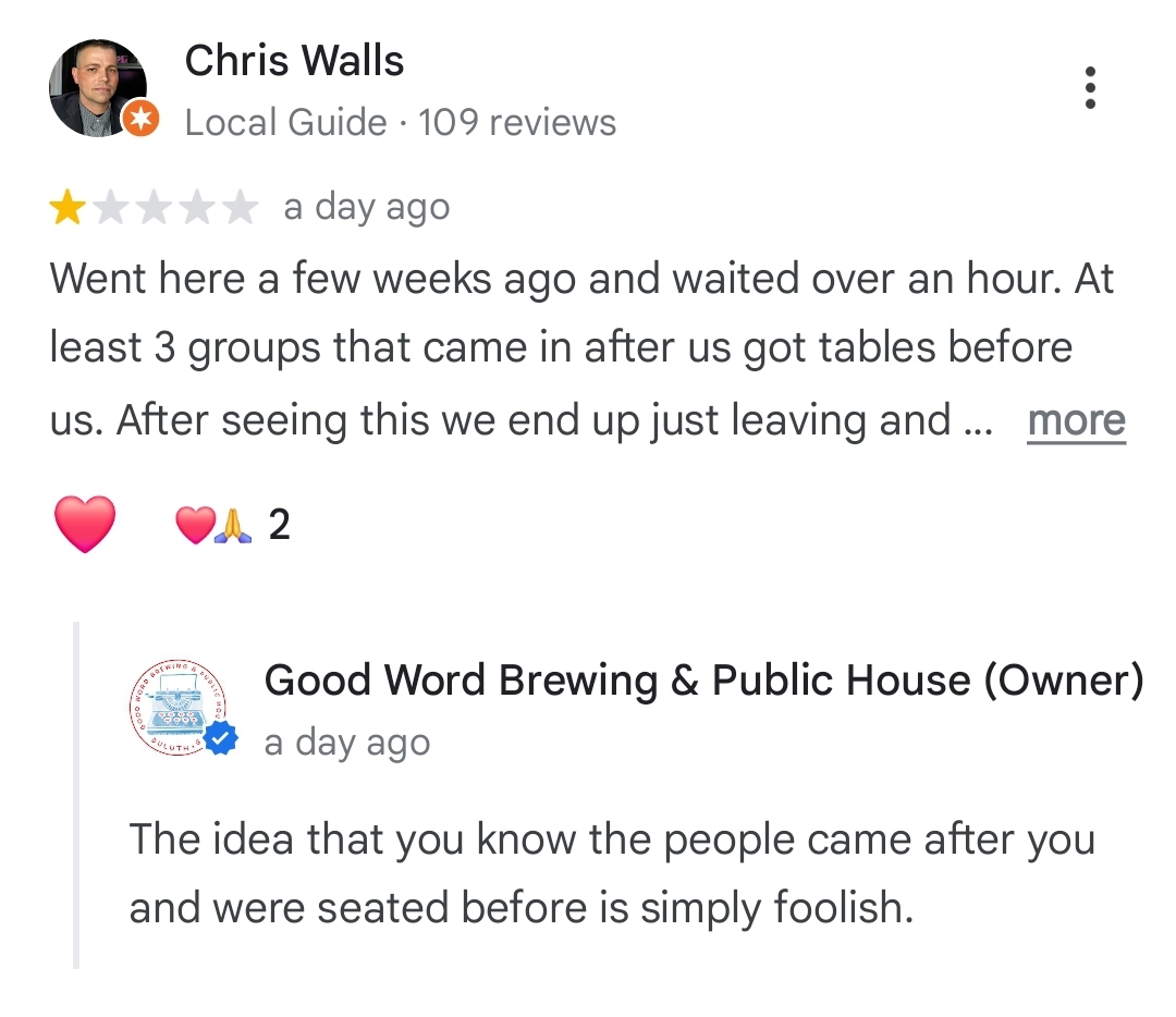 Final Thoughts While I truly enjoyed the great atmosphere and excellent service, the pricing and quality of the food and drinks didn’t quite justify a return visit anytime soon. Good Word Brewery has potential, but for now, it seems more like a place to visit once rather than a...