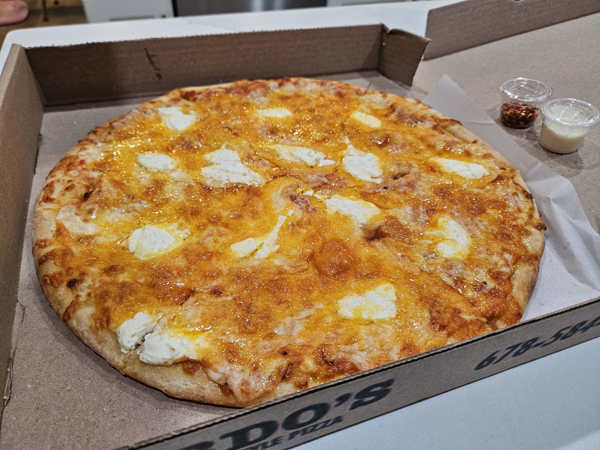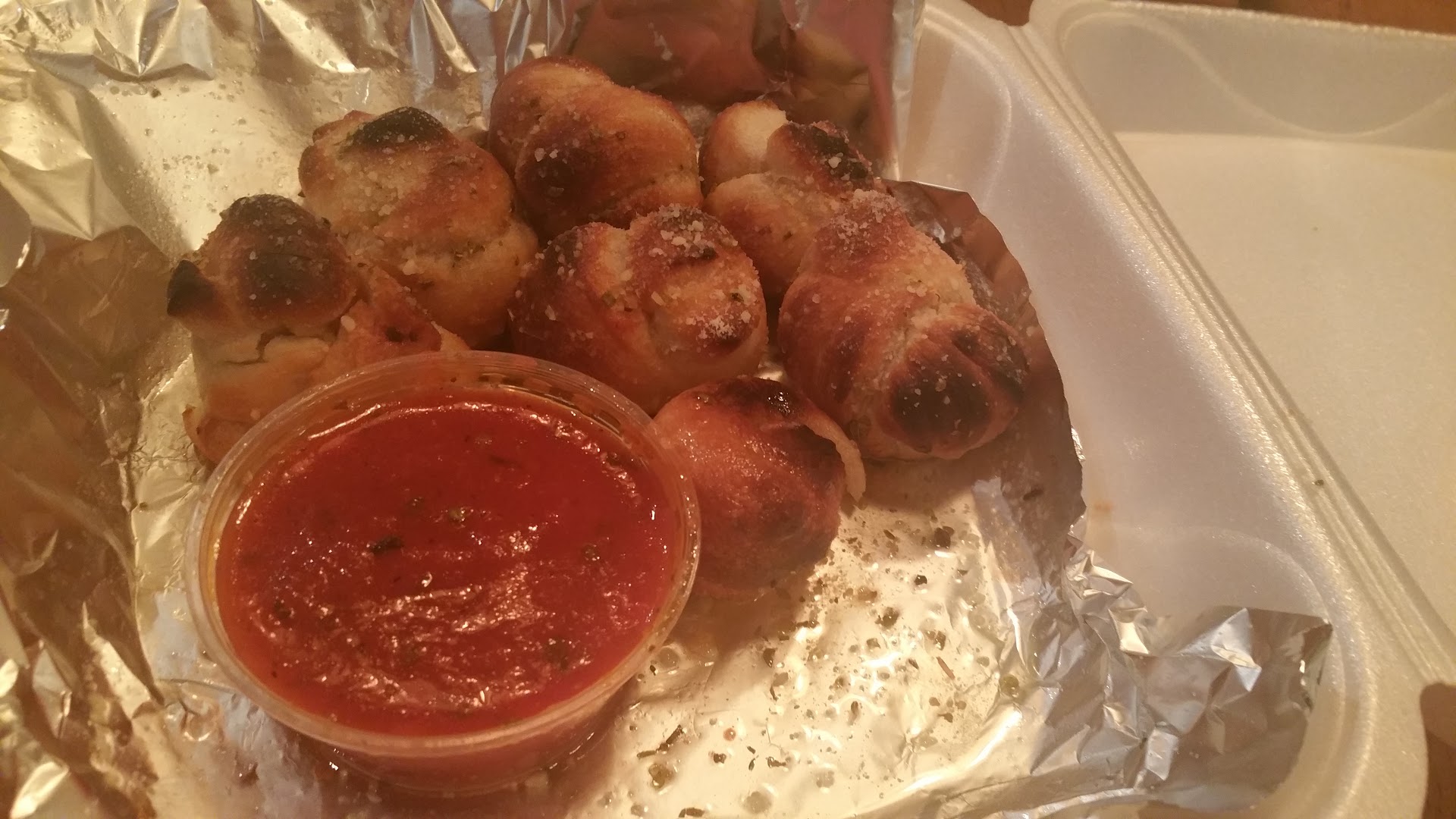 Read moreThis place seems less worthy of my business every visit.It was so hot in the restaurant that we were sweating and fanning ourselves. Garlic knots so tough and greasy that they are like tire rubber. Caprese salad so drenched in balsamic that its inedible. Waiter saw that we took 2 bites out of it and made sure we were done. Never asked how everything was. The works pizza looks and tastes like a glorified Tostinos supreme pizza, crust is kinda similar except the Tostitos crust has more color to it. My advice buy 3 Tostitos pizzas add a teaspoon of cheese to each and voila! A cheaper better version of this pizza 10/10 will not visit again. Whomever said this sauce(I would not dare call it a marinara) was like a new York sauce/gravy has either been paid to write that review or they just gave up on life and have settled...