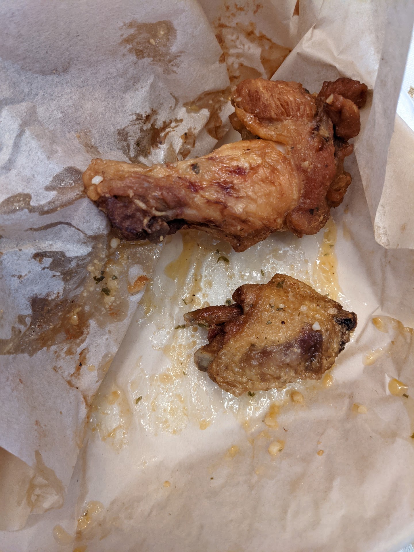Read moreFries are extremely soggy and got a weird after taste from being soaked in the oil for too long. Wings aren't that well seasoned. Got 3 flavors and they all taste like plain wings. Wings are large but they are also really tough. They even gave us one that was broken in half (shown...