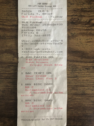 Before I could place my order, the CSA told me I had to pay over the phone with a credit card. I was driving and not about to pull over, dig through my wallet, and read off numbers. That’s wildly inconvenient. I understand that some restaurants are now card-only, but iHop isn’t one of them.
