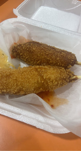 Iโve been wanting to try Korean corn dogs for the longest. It took me a lot of circling around the area to realize it was in the super market. Anyways even though I couldnโt really understand what the lady said she was very helpful. I got my order in under 5 minutes and itโs really cheap. When I bit into the corn dog the cheese pull was outstanding, and also no matter what corn dog you get say YES to sugar coating because the sugar just made it 10x better it tasted like a fried donut coated in sugar and when you bite into it you get a cheese pull plus some crunch....