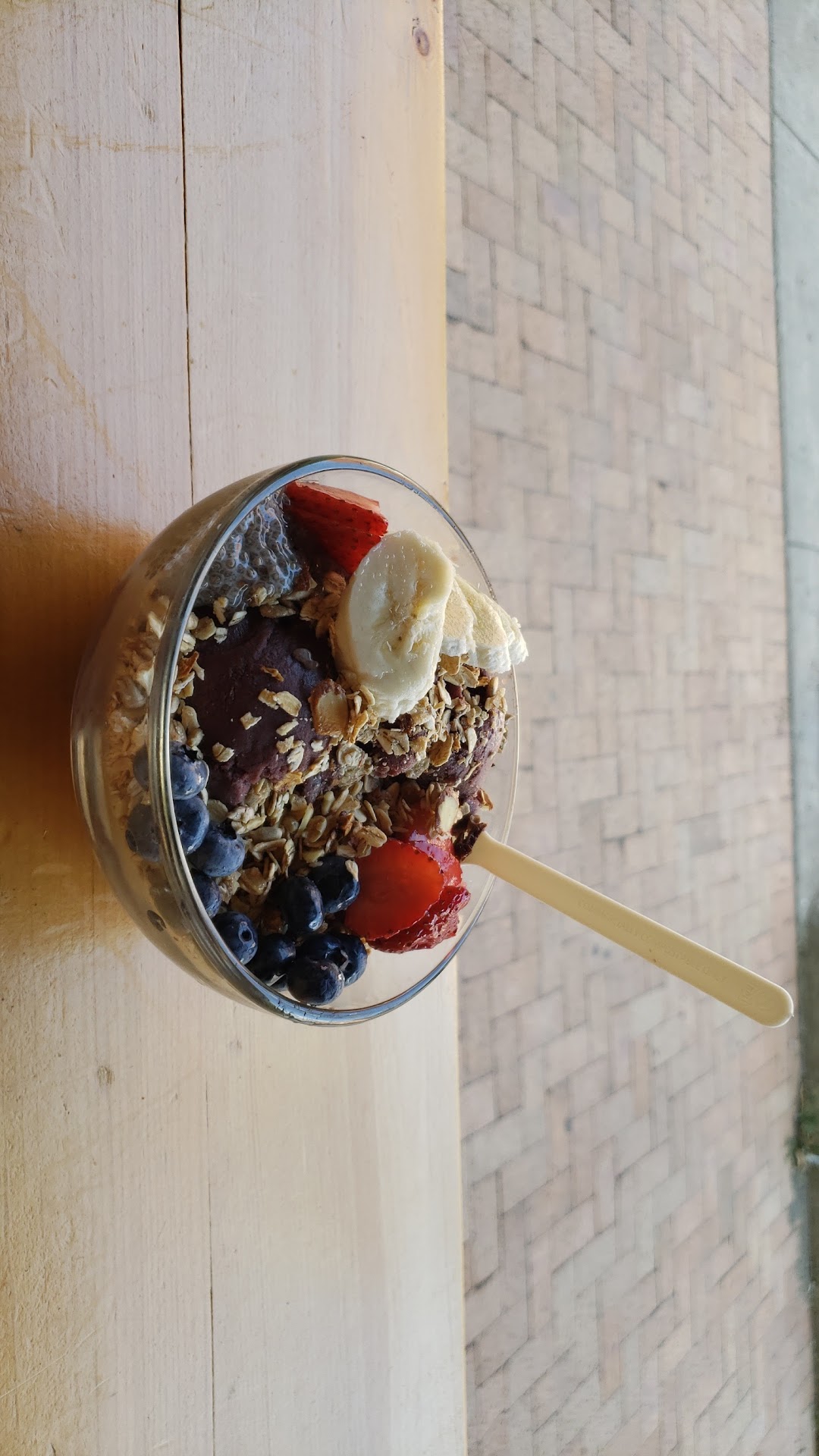 I ordered the following as a carryout order: I ordered a Acai Bowl specifically their Blue Majik Bowl-Large (24oz) with added Cashew Butter (the Cashew Butter was stuck to the lid of the container my order was placed in) , Extra Granola, and Add-on Blueberries. After I started eating it I could tell it was loaded with add sugar-so I broke my dietary goal-not intentionally.