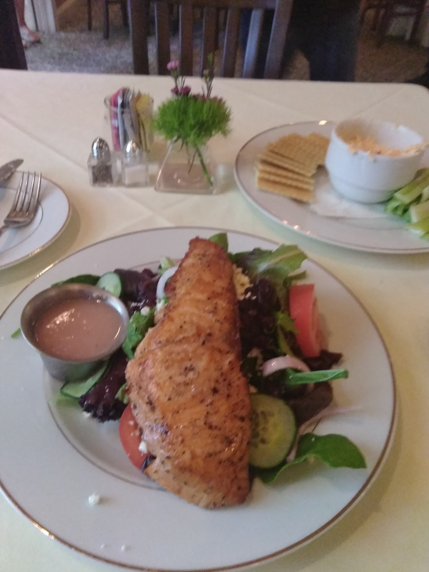 Read moreIntimate beautiful historic home that serves lunch.First the atmoshere cool and elegant white tablecloth but far from overly formal nice.Warm and welcoming started with the scones they were dense and fluffy with dried sultanas (raisins) and served with the most delish marmalaide butter. I followed with the pimento cheese dip served with butter crackers and celery. The dip was homemade with freshly grated new york cheddar, pimento in a creamy nufetal creamcheese. The main course was my go to when there are so many great choices and you have trouble deciding. The salmon salad on spring mix with fresh fetta garden tomatos and a bright zesty rasberry vinnagrette. The salmon was cooked perfectly with simple elegant seasoning nested atop the greens thinly sliced bermudas and english cucumber the dressing is served on the side.The staff is attentive and made me feel like a long time friend. This place is quietly nestled between the lush grounds adjacent to the famed Payne-Corley house best romatic place for outdoor wedding and reception, one would mistake it for part of the complex as I did a modestly priced lunch in a cool Victorian home awesome. The best kept...