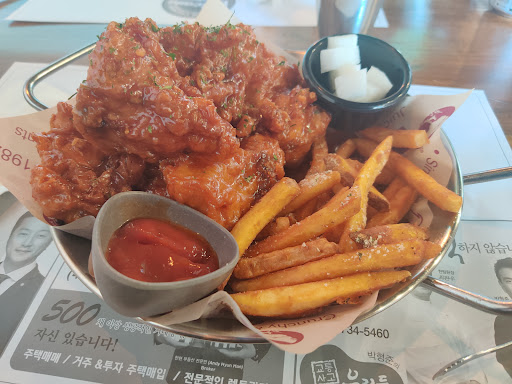 Read moreWe have tried foods below so far: (all foods were taken out) Sweet Potato Fries - 5/5 French Fries - 4/5 (taste good, but too common) Onion Rings - 5/5 (my wife's favorite) Mozzarella Sticks - 4/5 (nothing special) Fried Calamari - 5/5 (my favorite) Appetizer Combo - 5/5 (combination of 1 through 5, if you want to order all food above, please order this to save your money) Sweet & Spicy Lv3 - 5/5 Compared to spicy chickens from other Korean Chicken restaurants, this is the first spicy chicken that didn't make me feel bloated and a discomfort in the stomach. Excellent taste Honey Garlic Chicken - 5/5 My favorite chicken! I really like it. It's for children and people who don't like spicy foods. Crispy wings - 5/5 Disappointed when I ordered this for the first time bc it was a bit soggy, but they improved it, and I was satisfied with my second crispy wings. Corn salad - 5/5 Like above, it was disappointing at first. But they accepted our complaint and improved it. Now, it's really good. Thousand Island Slaw - 4/5 nothing special, It's finely shredded raw cabbage with thousand island dressing.