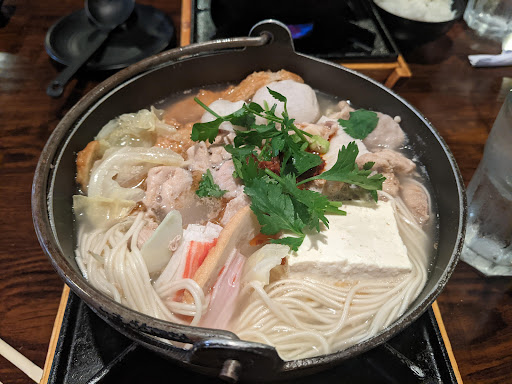 Read moreI may have totally overthought this - but I was so confused on how to eat hot pot! I ordered their miso-based seafood hot pot and was like "ohh - that's a raw egg . . . and that shrimp still has a head on it . . . and there are seashells in my soup . . . how do I eat this? Do I eat the whole thing?" So, brace yourself. If you haven't ventured very far with your culinary pallet this one may be a bit more on the advanced side. But let me preference this - the food is spectacular once you get the hang of how to eat it. It is perfect on a cold day and really gives you a great variety of different foods to try (like fish cake, fish, mussels, quail egg, different types of mushroom, etc.) The waitress was super nice and walked my husband and I through the process. Essentially, you can pick either rice or glass noodles to pair with your hot pot. There are appetizers that you can munch on while you wait for your hot pot to cook. If you have never eaten a whole shrimp or haven't been exposed to different varieties of seafood before - be open to learning and looking a little crazy as you figure out how to eat it. The hot pot is designed to be single-serving but the portions are big enough to where you can share them. My pot was $17 and my husband's was $15 - he ordered the mushroom miso based hot-pot...