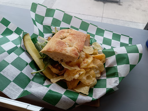 I popped in after a meeting in the area as I had missed lunch. I ordered the Tuna sandwich, no alterations. It was really delicious~ I loved the care they took in building the sandwich. the Texas toast was perfectly toasted - not the kind that tears the inside of my mouth, but provides a subtle toast texture. The tuna salad was perfectly balanced - not too sloppy and wet, not too dry. Not too salty either! The pickle was crisp and salty and delicious. The chips were a perfect amount so that I could get adequate crunch between bites. The decor was simple and industrial - white walls, menu boards held by fastened galvanized steel pipes, ceiling lights strung through half pallets. The bathroom was clean and well stocked - and I didn't need to ask for a key, so that was pleasant as well. I was too hungry to take photos, but perhaps next time. The sandwich making was a bit slow and confusing as the lady who started making my order went to the back and someone else finished, long minutes later. Or maybe it just seemed so long as I was very hungry.