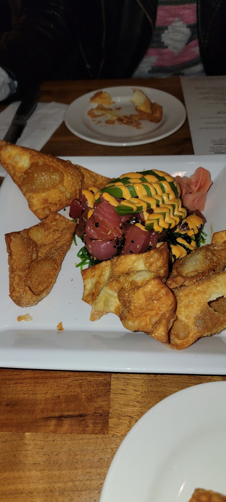 Read moreWhen you spend almost 2 bills on a meal, you should get unbelievable favors. That was not the case. The Tuna Poke was very good. But the ribeye was ok at best. Cooked to the right temp but had to salt pretty heavy to get the meat flavor to come out. The marble part of the steak was even the buttery salty flavor that you get from the natural cooking of it. Aa far as the sides go, I got the garlic mashed, ok needed salt or butter to be great, and was also a little pasty insread of creamy kind like they were over cooked and then reheated. The other side was the Woodfire glazed carrots. They just tasted weird and did not have glaze on them unless it melted off again from sitting and reheating. My wife wanted the salmon, but they ran out. I'm not sure how you are out before the weekend barely started, but she chose the seafood pasta dish with the gluten free verson in the case was wild rice?? Instead for noodles? Anyway, the dish parts separately tasted good, but as a dish, they didn't go well together. On to service...at first it was great. However, as the night progressed, our wait became less and less available. Also, my wife tried a 3 wine she really liked the second one, but we were told that they only had the one open bottle left, and we wanted a bottle. Party because we were celebrating my wife's birthday. When the waiter came but after the 3 wine we tasted he said that the bar manager would let us have the rest of the bottle, that he side was 3/4 full, for the price of 2 glasses. We never got the bottle and were charged for the 3-4 oz pours. I know that is less than half of the bottle. We make wine so we know... the we noticed as we finished our meal that the table next to us which arrived after we got our wine had a bottle of the same wine we were told they had only the open one left. Meanwhile, the waiter was letting us know that the new manager was getting rid of and changing all kinds of stuff. His tip probably would have been a little better if once we were done, he gave us our bill instead of talking to the table next to us for upwards of 15 minutes while we waited and waited. Finally, the wife just decided to go out to the car, and I am still waiting for his chat with they table next to me end. According to Google, we came he 4 years ago and had a similar experience from my review. We decided to give you location another try, thinking that by now that there would be new employees and better food. What a...