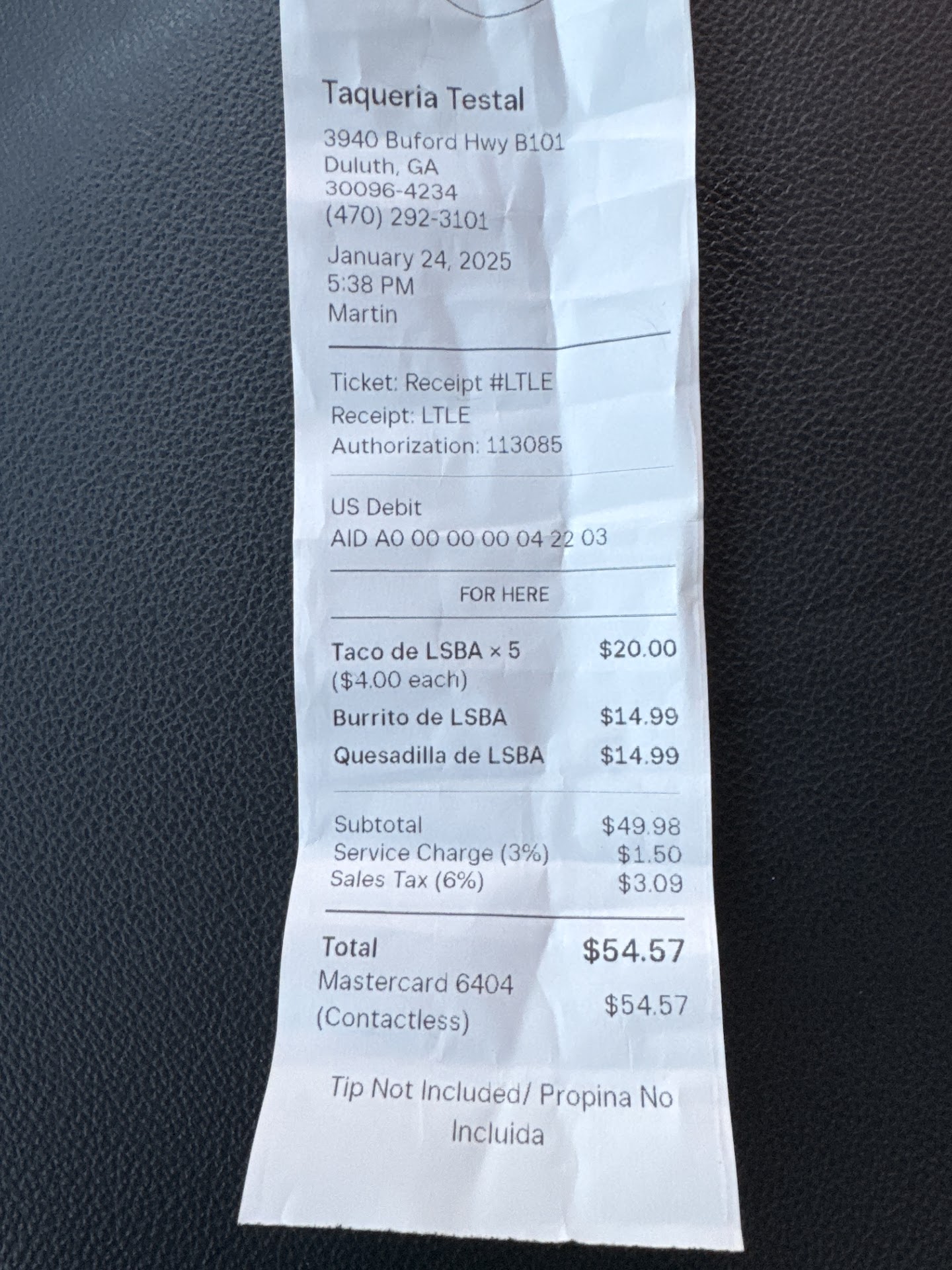 Read moreTaqueria Testal : Testal Spanish term or phrase means in English translation means the dough ball [sphere] from which tortillas are patted out. A fresh, fabulous, and fantastic hidden gem for you to test. We have ordered take-out from this place a few times now. The Corn dough is of good quality. Today we had brunch nay early lunch. This place was opened a year ago and is a family-run business. We ordered Tacos with corn flour Chicken, Fish, Shrimp, and Chicken quesadilla with rice. Rice was delicious The prices for the food seemed reasonable. The place is neat and clean. We were welcomed and to be seated where we wished to be seated. The hot crisp Tortilla with Salsa was good. After the food was served while waiting for our little one to finish we were served a second plate of hot crisp Tortillas with Salsa. Enjoy!!! Thank you for supporting the Local businesses in your...