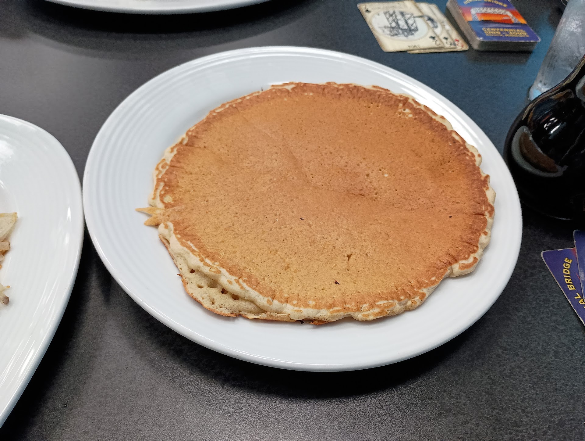 We ordered our breakfast and it took longer than I'd expect to get our food which again, would have been fine except the server didn't offer to refill my coffee once during the entire meal. We both ordered from thier breakfast specialty menu. I got a country fried Ribeye steak with hashbrowns, eggs and a pancke. My girlfriend ordered thier homemade corned beef hash with scrambled eggs and toast.