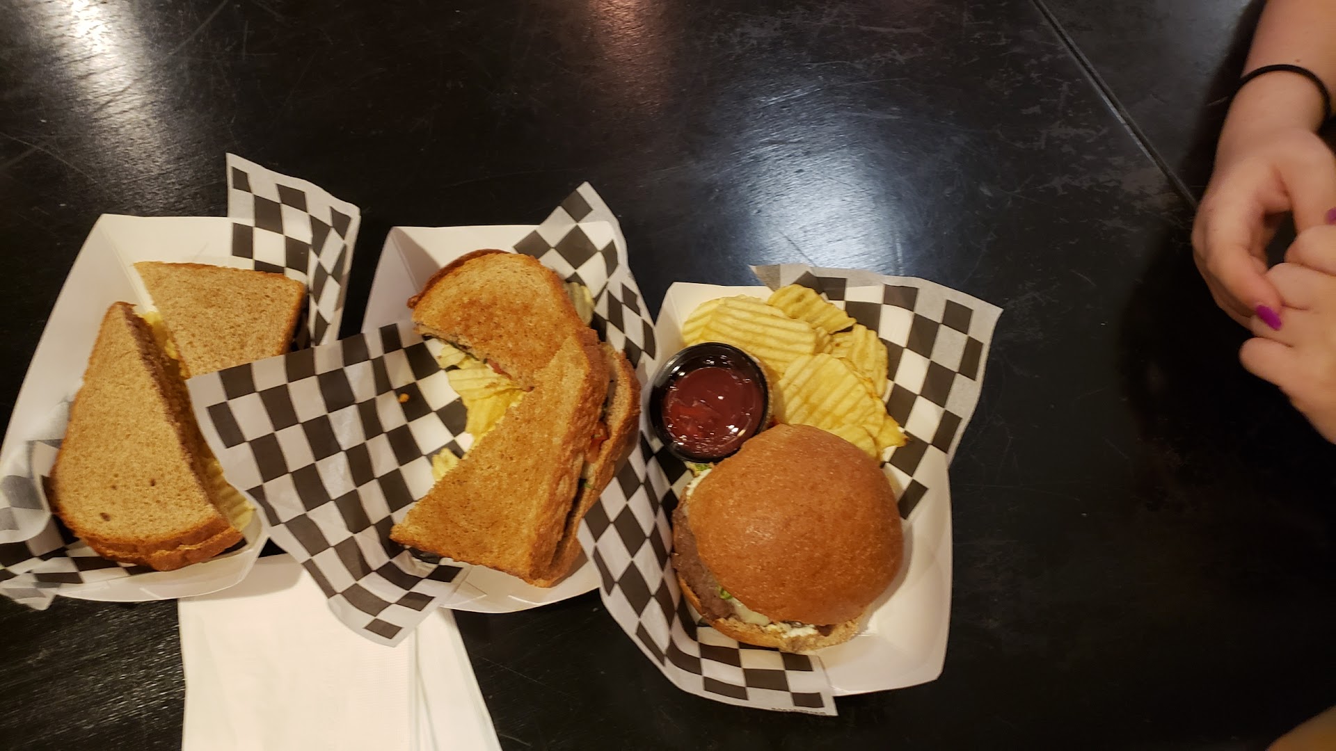 Read moreMy family visits Duluth at least twice a year. When we do, it is my task to scout out restaurants. I found what I thought was a gem but found out quickly that it is not. 3 of us got the turkey Tom, and my youngest kids got the kids burger, and 1 of them had a PB&J. As my kids were eating their burgers, I saw that the meat was a little pink/red in the center. I asked myself, should I be worried? Nobody at the counter asked me how they liked their burger meat, which should have been much first sign something was off. Immediately after consuming one of my kids, they said they didn't feel good,rushed to the bathroom, and had the runs for the next 10 minutes. He had stomach pain for the rest of the day. The next morning, his brother woke up throwing up. I am waiting for my daughter to get sick as well since she also consumed a burger. The rest of the food was just okay; if you have had a turkey sandwich, it's exactly that a turkey sammich with 0 condiments on the bread. The highlight was the tomato soup; it was flavorful and delicious. If you do decide to come here, keep your kids away from the burgers. Since two of the three that ate burgers got severely sick from what I assume was food poisoning, we will not...