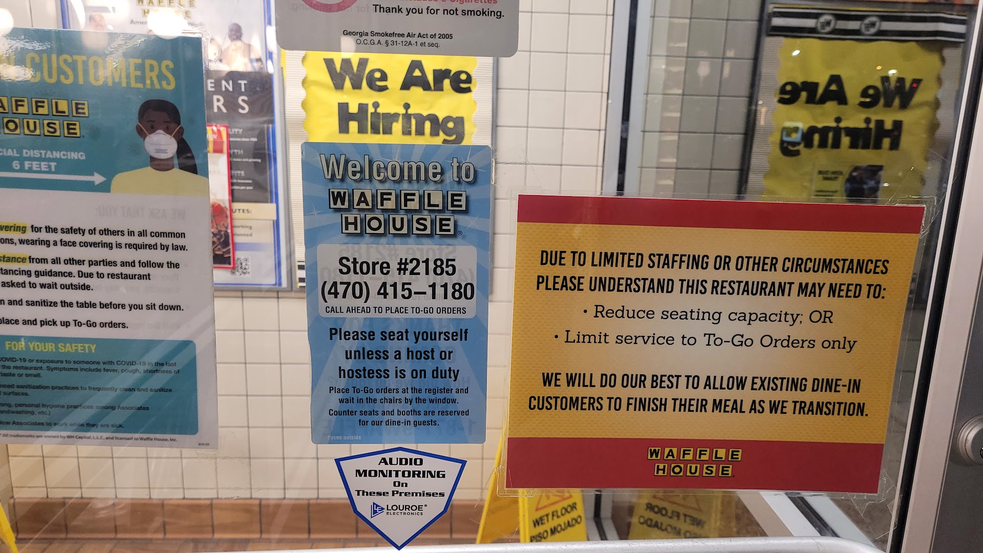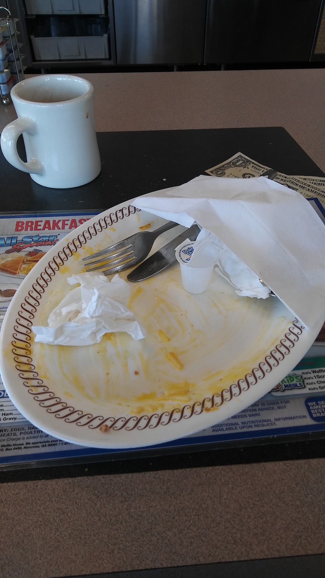 The only reason I'm giving this place 3 stars is because of STEPHANIE & THANK GOD for her this morning ! My boyfriend and I thought it'd be fantastic to try this location out because it's new even though we pass like 4 other ones on the way. We were gritting our teeth by the end of our visit. I work in retail , so I definitely look for great custom service every where I go since I am obligated to do the same when I work. I'm all for having a good time , positive energy, & being able to joke and laugh at work . It helps get through the shift quicker . We came in weren't greeted by any staff..fine , but when your actual greeter rushes past without even saying anything ..that's strike one for me. We sat at the bar and Stephanie greeted us right away . She was very attentive to us , never had to ask for anything even a refill, and pleasant conversations . Besides us, there were plenty of parties next to us who were also discussing the atmosphere. First off , I don't understand how WAFFLE House waffle irons can be malfunctioning. All the irons were sticking and several burnt waffles were the result. We were told "no more light waffles" and when suggesting using non stick spray we were told they didn't need that ... because continuing to make burnt waffles is turning out so well . A few members of the staff were just over the top. I couldn't even hear my boyfriend right next to me at the bar over them. Like I said , I'm all for fun at work but know how to tone it down when customers are there. Y'all literally work right in front of people , the hollering , play fighting , and quick attitudes are not something customers want to see when they eat . Yelling and getting attitudes with your coworkers because they're over how crazy y'all are acting is unnecessary when YOURE the problem. And then we thought when Juan (could be wrong name) who we thought was the manager came in that we would see a difference , but no managerial actions at all besides checking things off a list. Clean environment for the most part , food was good (we were able to get lighter waffles) ..just tone the craziness down , especially when you're in an area that's used to better. Thank you Stephanie ! You were definitely appreciated today , 5...