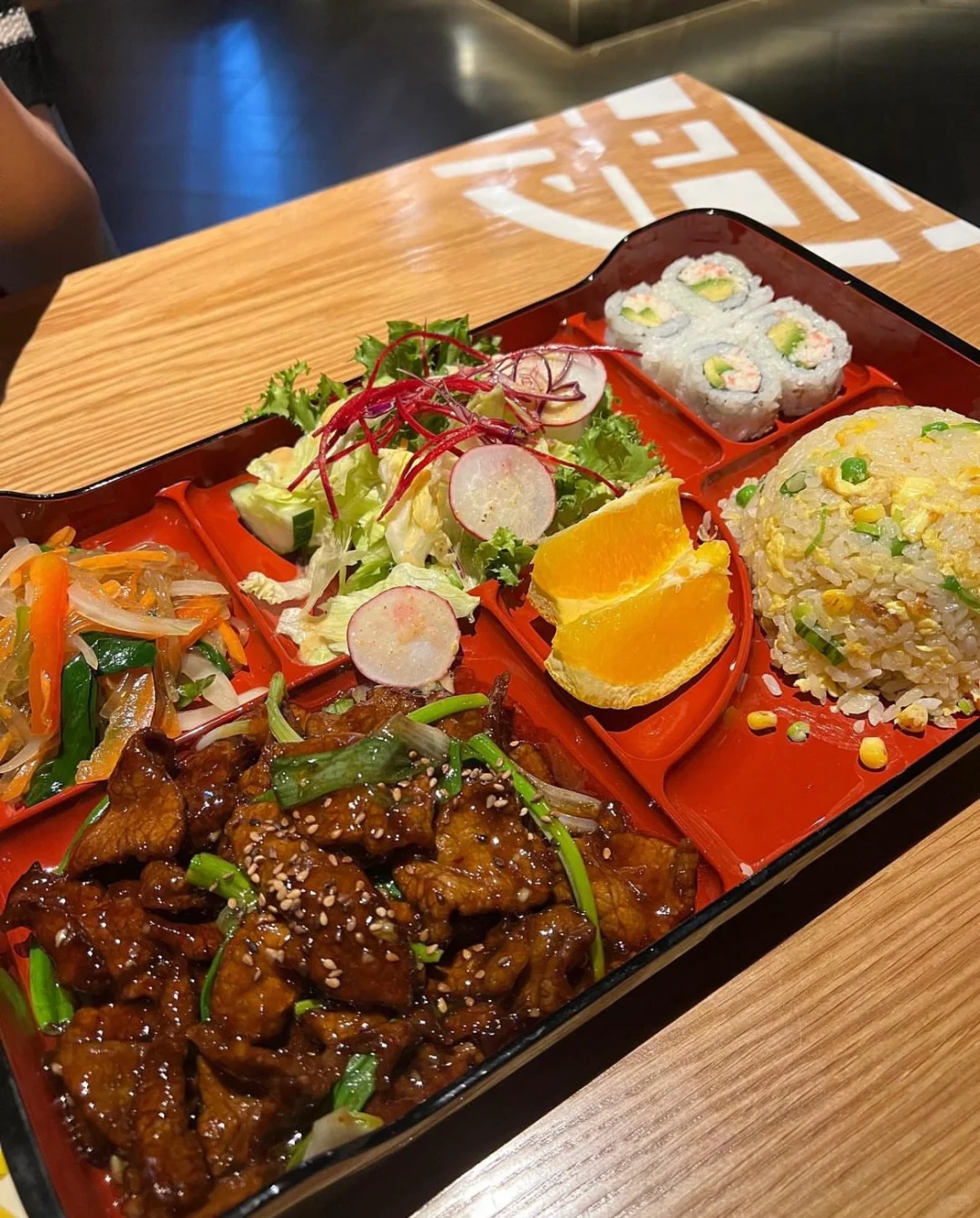 Service 3/5: It took a while for us to get greeted, my aunt had asked for hot tea to begin with, but we got our food before receiving the hot tea. Then after that, we had to ask again. We had to ask our server for soy sauce and water twice and he was just always in a rush. He wouldn't have had to walk back and forth so much had he stuck around to just hear what we needed, but he was just eager to walk away from the table. We of course tipped 20% still. We probably didn't order the right stuff because although the server saw us struggling on what to get, he did not give us any help or recommendations. Very weird. Not a great experience. We had some food leftover and were not really wanting to take it home with us. It was also super strange to us that the last time to put in an order was an hour before closing. Usually, it's 15-30 minutes before closing that the kitchen closes.