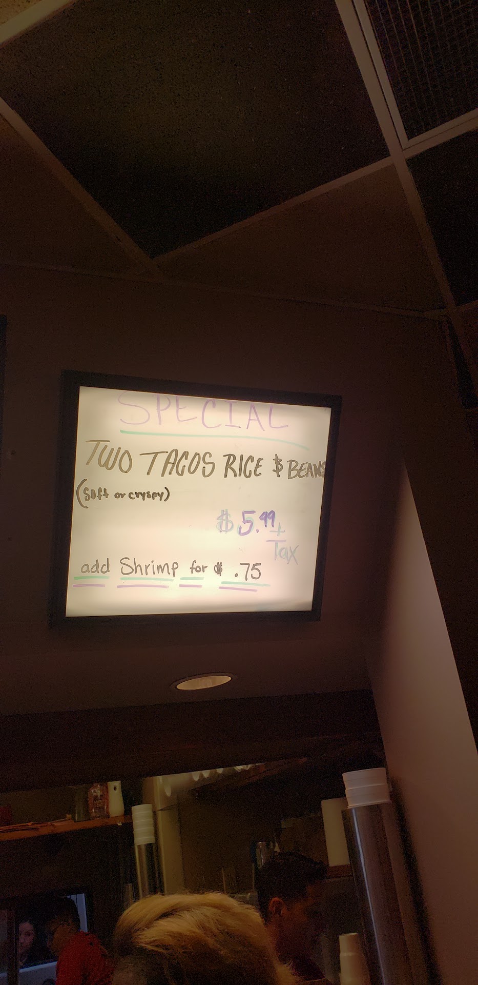 Read moreJust brought home 3 very dry tacos, shells you could use as rocks, chicken dry & awful!! Couldn’t eat, taco salad, terrible just terrible! A few pieces of lettuce, 4 little strands of chicken, soggy soggy! Salty too!! We have never had this awful food from there EVER! Tried to call, phone full of messages, no one answering!!! Why no one is answering who knows! Can’t work like this, too expensive to waste PERIOD! I will try to go...