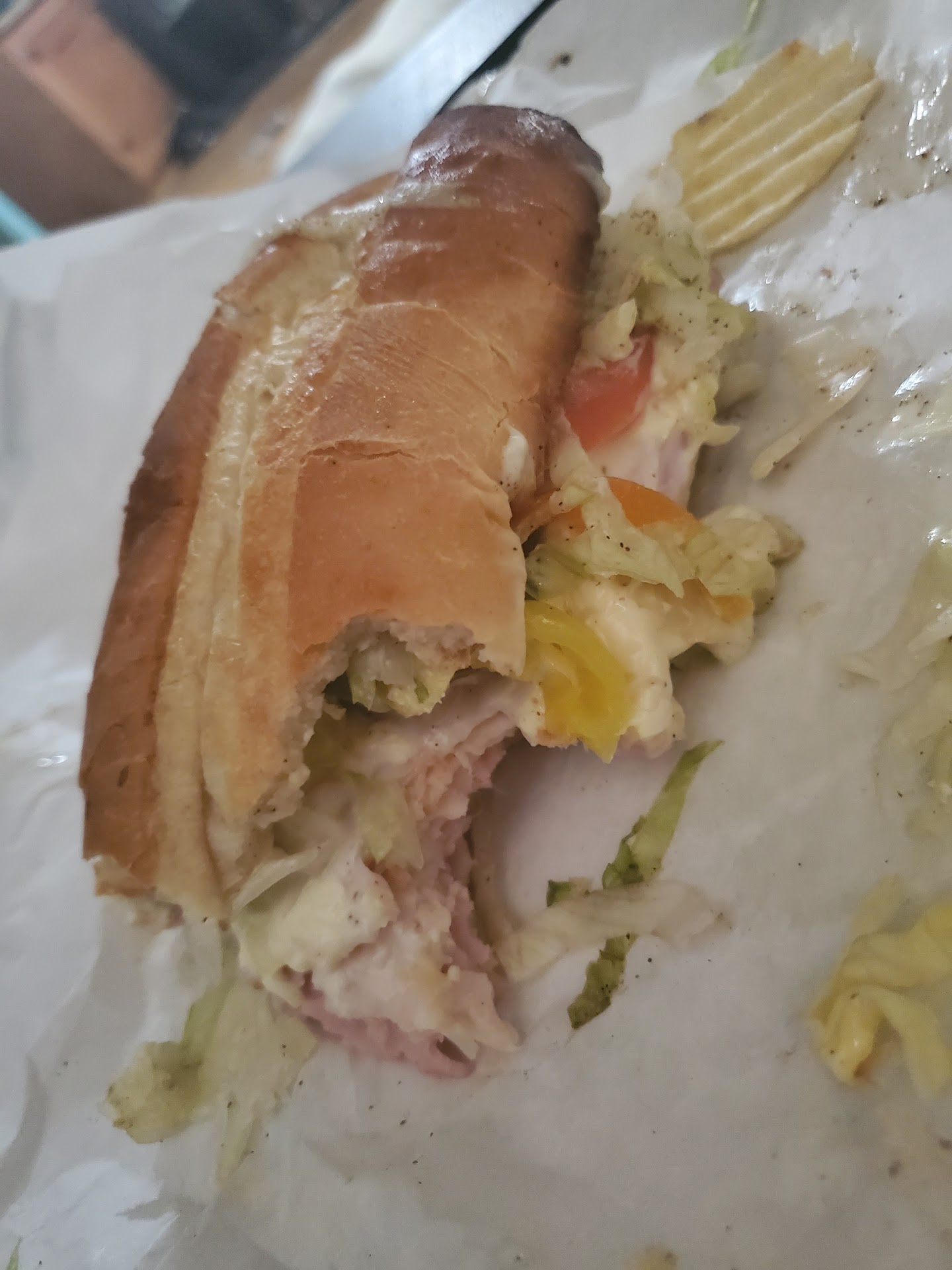 I have been wanting to try this place but was always outside their business hours. Today, I got lucky indeed. They were out of potato salad but my stomachs emotions were calmed by the lovely slice of Tiramisu. There were tasty looking cannolis in the case but my tummy yearned for the tiramisu. Worth every calorie! I ordered the Ah-Way hero stacked with roast beef, ham, turkey and Swiss this sub was delish on the soft hero roll and fresh shaved lettuce and sliced tomatoes.