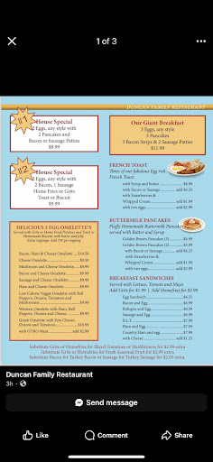 The water was the only good thing, and the coffee was decent. Every dish we tried (chicken and dumplings with sides of carrot and raisin salad and yam soufflé; and grilled pork chop with Mac and cheese, banana pudding and fried okra; and we got peach cobbler) was some of the worst food we’ve ever eaten. Chicken and dumplings had a very weird taste of lemon. Carrot and raisin salad tasted like straight up, textured mayonnaise Yam soufflé (how does one even mess that up??) had soggy pecans and the taste of margarine far overpowered the sweet potato flavor Grilled pork chop was dry, completely bland with no flavour Mac and cheese was really more of a velveeta cheese sauce mixed in with overcooked pasta Banana pudding was the only semi-edible food, and it was clearly the cheapest commercial pudding mix Fried okra was completely bland, with a weird aftertaste like there was cleaner or something in it. Peach cobbler was literally just canned peaches in a soup with a few globs Waitress did her best to provide good service, but when we went to the front to pay, we waited for a REALLY long time, and nobody came to the front until there were 3 other parties in line behind us We’ve both eaten better food at Waffle House. If Burger King or Jack in the Box (IMO, the worst of all the fast food chains) decided to open a country cooking restaurant, they might actually have done better. I’ve been there before today, but that was at least 7-8 years ago, the food was decent then which is the only possible reason for the high ratings. We are big supporters of local, small businesses, and stopped in today since we happened to be in the area. We will NEVER go back and if you hope to get edible food, I’d recommend you go...