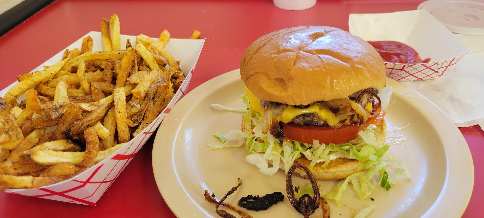 Read moreI come to Duncan a couple of times a year, and disappointed that I didn't discover this diner earlier. Grilled onion burger was perfect. Plenty of meat, caramelized onions, slightly toasted buns, and great flavor. Fries are fresh hand cut and a huge portion and cooked just right. Staff was friendly and welcoming. Seating is barstools facing the grill area or more barstools against another bar facing outside. Lots of football memorabilia inside and a row of classic helmets. The place could use a good cleaning, but if you can overlook that, you'll be rewarded with a great...