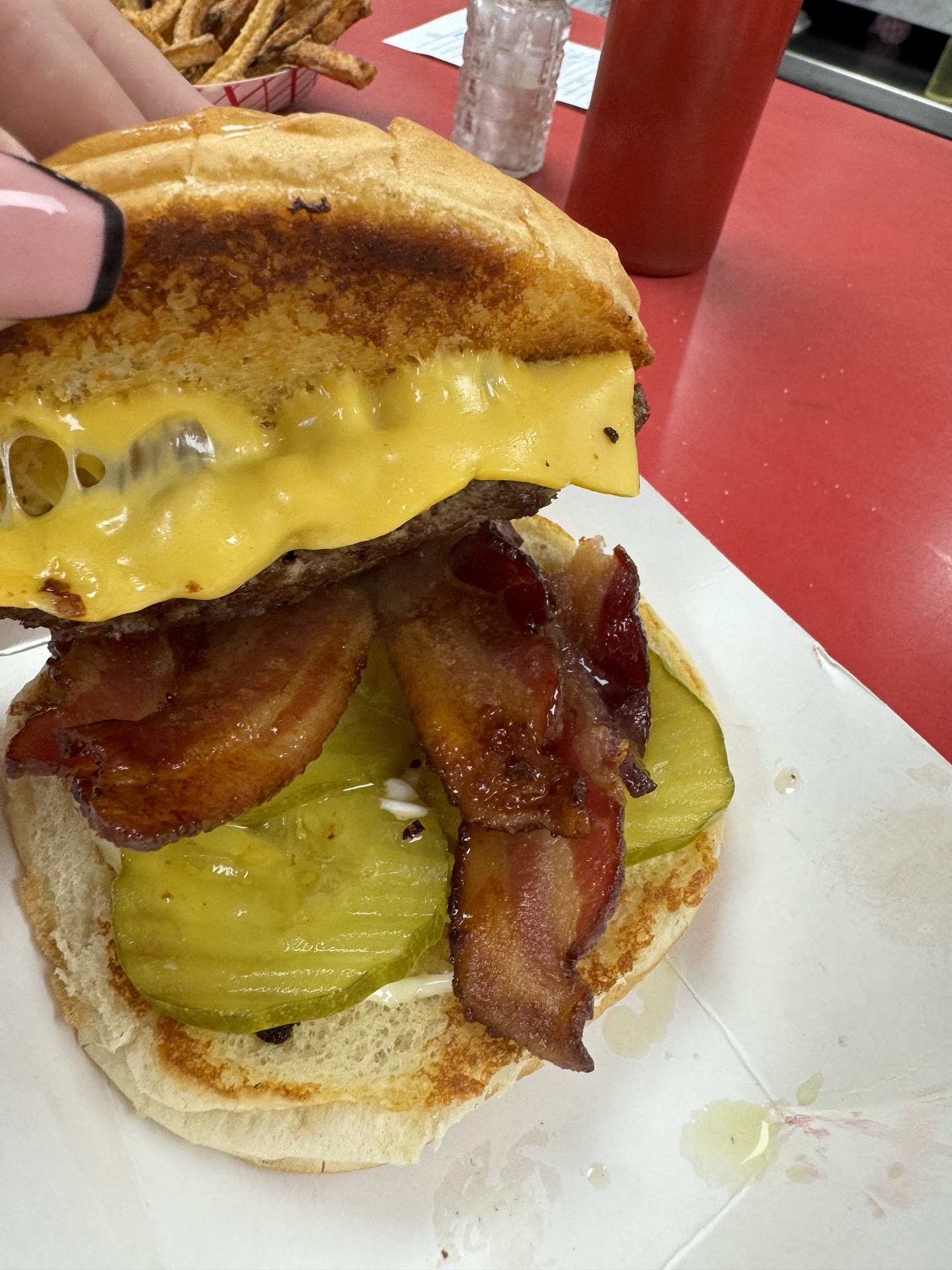 It saddens me greatly that Eastlands Grill is not what it once was.. food is still good not as good as it once was but it's still good. service has diminished greatly when you watch somebody put an order in 10 minutes after your order goes in and they get their food about 10 minutes later why you watch your food getting cold in the back counter cuz nobody's bothered to back it up and hand it to you is super frustrating.. I watch the fries get cold for at least 5 minutes if not 10 mins and watched the two burgers sit on the counter for another three or four and then when somebody did finally managed to put them in the bag, they sat in the bag for another minute or two right there at my bag debating on whether or not to pick it up and hand it to me.. and I'm not sure if their portion size have shrunk considerably or I got charged for the big burgers and I only got the smalls.. and unfortunately I did love Eastlands quite dearly but I'm afraid that will be the last time I go into...