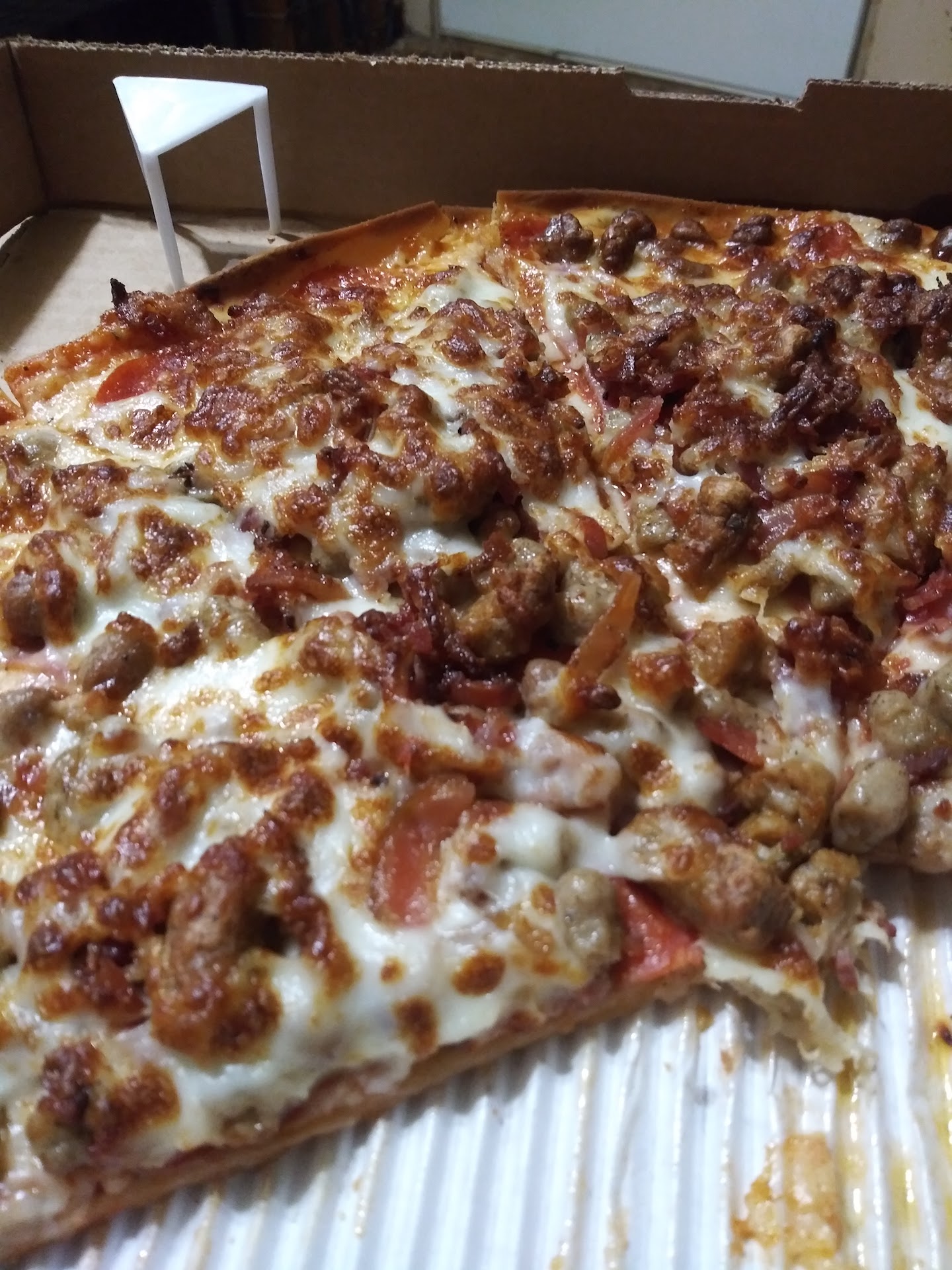 Read moreWe ordered carryout online. I ordered an original crust and got paper towel thin crust. Tasted bland. Ordered Italian Hoagie supposedly with mild pepperoncini's they were very hot, had to pull them off the sub. Also, ordered that Hoagie with fries and pickle spear but, received chips and pickle spear.