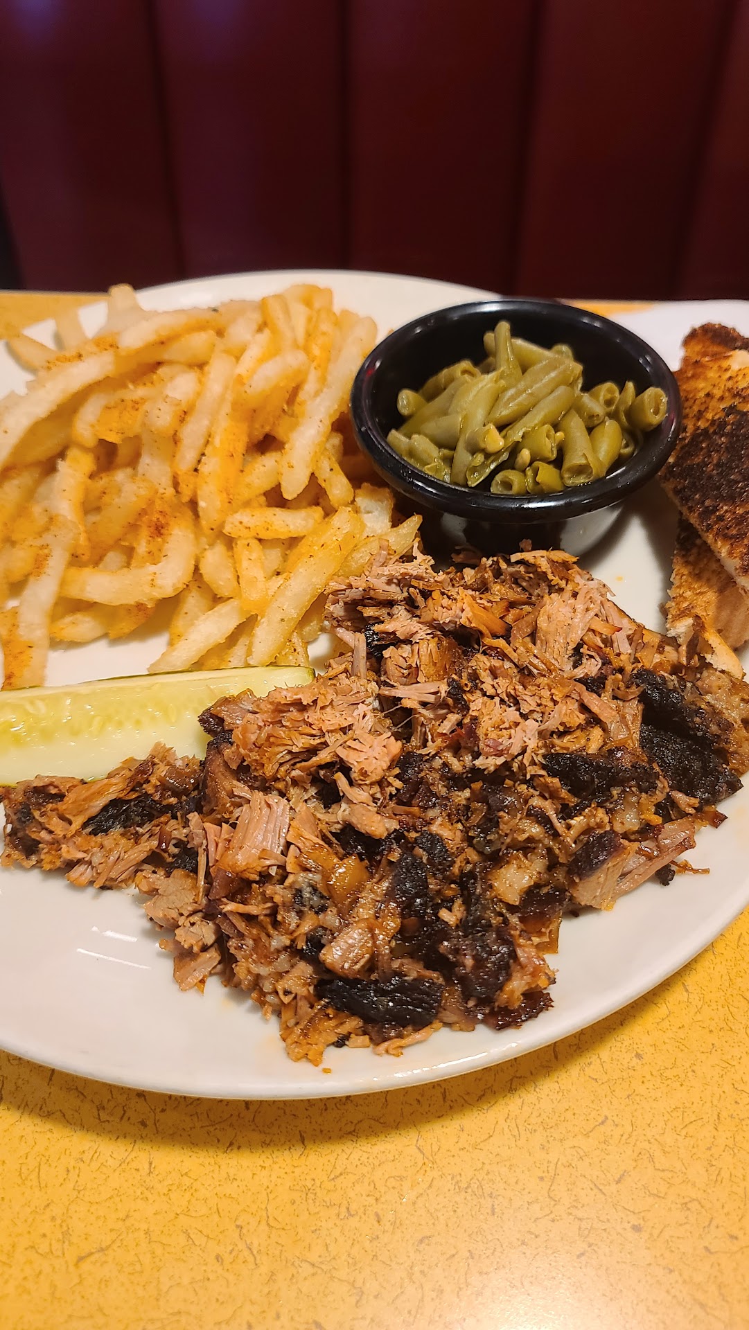 I have eaten here several times when I stay in Duncan. I got here at 8 pm on a Friday night. As I walked in, I saw some sort of sign posted on the door. But, due to the condensation on the door, the sign was completely unreadable. I later found out the sign was supposed to say they were out of brisket. I sat down and ordered a drink. I tried to order a meal only to find out they had no pulled pork. I then tried to order the brisket instead. No luck. I settled for the chicken. A family came in and sat down. They were not told the place had no brisket or pork until after they had ordered drinks and an appetizer and tried to order their meal. At this point, I overhear the waitress say they were out of ribs. I must have gotten the last two. Nope. Because about 3 minutes later I was told they didn't have enough ribs for my order either. At this point I was pretty upset. A BBQ place that sells meat but doesn't have pulled pork, brisket, or ribs!?! Seriously! How about make some more! I realize it's not as easy as slapping it in the microwave, but surely someone should be monitoring the meat to make sure you have enough to last until close on a Friday night. I settled for chicken trips. Just what I wanted at a BBQ place. Another couple walked in and they were not told this place had no food either. They ordered drinks as well. Only when trying to order a meal did they find out their choices were severely limited. They paid for their drink and left. I don't blame them. If you are not going to have food, you should have the hostess tell people what they are out of before she seats them. That only makes sense. Instead, youngest them and bring drinks in hopes of guilting them into staying and ordering whatever scraps you have left. Bad business. They tried to make it right with me by offering a free dessert. Nice sentiment but not enough for being out of almost all the...