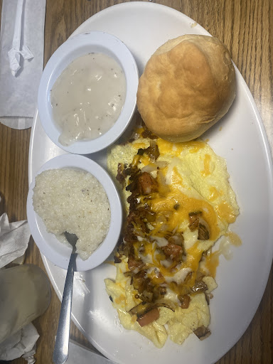 Looked up "breakfast place near me" and this place popped up, so we gave it a try. It was OK. The inside was much nicer than the outside appearance. The restaurant is inside a worn down shopping strip, but the inside has been renovated and has a crisp white modern look to it. Very Instagram worthy and a place where you can stop by and have a nice lunch with a couple of friends. It does feel a bit too open and sterile when you first walk in, but feels a bit less intimidating once you sit down into one of their booths. The service was mediocre. The only waitress there was nice but not thorough. We had to call her every time we needed something because she didn't check up on us during our visit. She would come to the table only to bring out what we ordered. Our food took extremely long to come out so I figured there might of been a shortage of employees... and I was right. The owner, or manager, came out while we were eating and apologized for the delay in receiving our meal due to a labor shortage and said our meal was on the house because we shouldn't of had waited as long as we did. It was very kind of him and we offered to pay anyway and he reduced our bill to half. The food is your typical diner food. We had coffee (very weak), eggs, bacon (good cuts), hash browns (weren't fried enough, but I liked that they weren't oily), toast, grits (yummy), French toast (not the best), sausage, pancakes (very good!), and breakfast tacos (store bought Mission type flour tortillas, big No-no). We didn't get to try the biscuits (which looked big and fluffy) or the lunch menu. Nothing really stood out as unique from the menu, nor the taste, other than really good pancakes 🥞. Prices were higher than expected for the location and size of the establishment. The bathrooms were clean and pristine. Overall the place was just OK. I recommend the pancakes with bacon if you happen to stop by. A lady next to us ordered a biscuit breakfast sandwich and looked absolutely delicious, but can't say for sure. Take a cute selfie while you're...