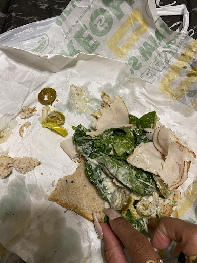 10/19/21 I will never eat here again. First I will like to say I pulled up around 8:50pm tonight and the young lady who made eye contact with me saw I was about to come in ,but she still proceeded to attempt to mop the floors upon my arrival.. I came inside walked past her and stood at the counter to be greeted. She went behind the counter and started putting gloves on. She was just holding a mop and a bucket of water and instead of washing her hands she started putting gloves on. I asked her to wash her hands first and she said okay that’s when I saw the young man he came from the back and came out to wash his hands and proceeded to help me instead. The young lady went back to start her mopping when the young man told her to put a wet floor sign out for customers to see. These were my red flags here and I should’ve left as soon as I saw them but instead I decided to give them a second chance so I ordered my food paid and left. When I got home to eat my food I immediately could taste the bread was old and stale as if it had been sitting there all day or night and the turkey on my sandwich was also old and had a horrible smell to it. I am very upset and disappointed with the service this franchise provided. I will never eat here again. You would think that after a pandemic you would make sure your store is up to par to remain in business but it’s obvious you could care less. This franchise should not be in business especially since you don’t have the decency to follow food regulations...
