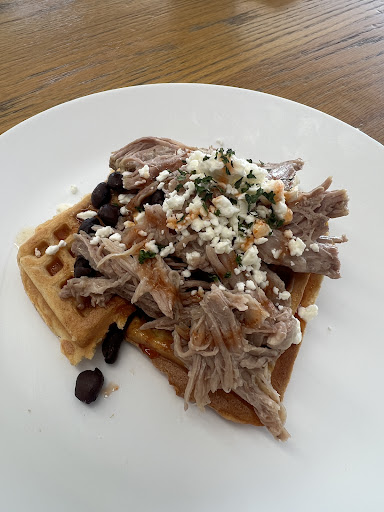 I stopped by Xela Bistro in Duncanville this weekend and tried something called The Porky — easily one of the best brunch plates I’ve had in a long time. The egg was cooked perfectly, that just-right balance where the yolk melts into the waffle. The walnuts caught me off guard in the best way, they added a quiet crunch that tied everything together. And the ham? Sweet enough to play nice with the waffles without taking over.