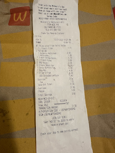 Read moreYou guys have GOT to do better! Every time I or anyone I know comes here later at night (10pm pm. Or later) the drive thru is a MESS. Line backed up out onto wise ave, sitting in line for over 30 minutes. Just to get up to the window to see whatever employee working frantically trying to gather all the things you've ordered and deal with the massive back up of cars. STAFF MORE PEOPLE! DO A BETTER JOB OF RUNNING YOUR RESTAURANT! It is absolutely not the fault of the employees working (mostly) from what I see they are trying their best but I always ask "you guys short handed?" And they ALWAYS say it's only a few of them working. Tonight I had to wait while door dashers were mobbing the window to get their deliveries because they couldn't even turn in off the street. Let alone what the employees deal with from a bunch of angry customers that just sat in line for 40 minutes for some McDonald's. I don't like eating fast food much for obvious reasons but with my schedule and life it ends up happening more than I'd like and this was usually my go to but NOT ANYMORE and I hope alot of people stop going. Not supporting a place that can't even staff enough people to make it so things can run how they should. Either don't stay open all night or learn how to be a 24...