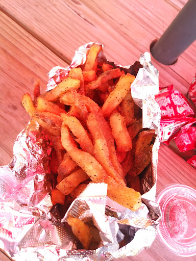 I ordered a pit beef cheesesteak with coleslaw because my brain said “meat... now,” and my equally fried friend went all in on the BBQ ribs with mac and cheese like it was his last meal before teleportation.