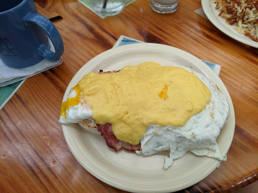 Read moreThe hollandaise sauce on my eggs benedict was broken and very thick, and the English muffin was soggy, not toasted. The hash browns were tasteless. One of the best things about small kitchens is the nice seasoned griddle that never gets cleaned, however, the pancake had bits of onion stuck to it. Pancakes shouldn't taste like onions. They were also somewhat grainy. The bacon was tough and chewy. The service was good but we waited far too long for our food. They allow smoking on their beautiful patio, which makes it far less charming than it could be. All the flies out there were very annoying as well. Considering all the great reviews maybe it was...