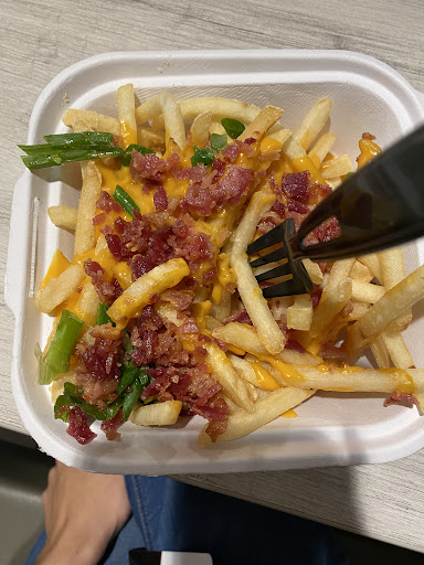 Once I received our food for my sandwich, the bacon was stale, the signature beef was not hot, and my bottom bun was mushy. I ended up throwing it out. The baked potato was perfect. The cheese fries were quite stale, cold, and unsalted. The cheese did not settle in the fries like its supposed to — if you go here often, you know what I mean! We threw out half the cheese fries. Also never has happened. The shake was good. And for some reason the water from the machine tasted like …. soap. Quite odd.