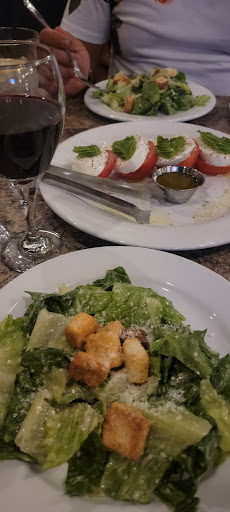We ordered a glass of wine which was priced at $8. Seems fair. We also got the caprese salad which was so fresh and yummy! Then, we were served a delicious Caesar salad before our entree.