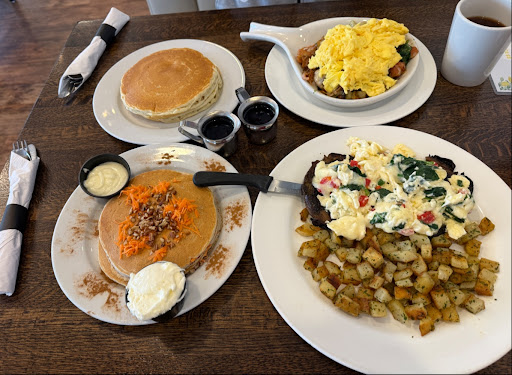 Read moreVEGETARIAN Highly recommend this place. They have plenty of options that are clearly labeled vegetarian with a sign. My favorite is the portobello scrambler. Its a thick cut of portobello which is super juicy and has a rich flavor profile. Topped with egg whites and veggies, makes it a very unique dish that is very healthy and flavorful. This was the first time I have ever had something like this and I really liked it. If you like mushrooms, I would suggest going here just to try this, its fantastic. The carrot cakes are also very good, they are made with multigrain flour which gives them a nice rich taste and texture. They donât serve real maple syrup which is a downer :( wish they did. Iâd give 4.5 stars for that but if I could but i decided to round up. The atmosphere is very nice, interactive, and well themed. Gives the place nice sunny vibes. Staff and waiters are friendly and service is good. Will definitely...