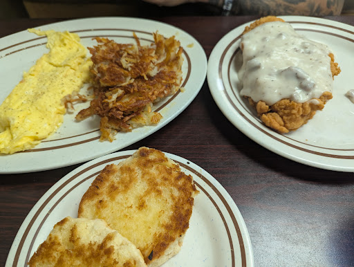 Read moreFirst visit to Dundee Diner for lunch/breakfast. Since it was Sunday around 12:30 we were with the after church crowd but our wait time was only about 15-20 min. The diner is a pretty good size with more than 20 tables. We ordered Hickory burger with bacon, American cheese and bbq sauce served with fries and Cole slaw and we ordered the Dundee Skillet which featured scrambled eggs, potatoes, sausage gravy, cheese and toast. We also ordered a biscuit. The service is attentive and today Kelly was our server. The burger was a big burger and by itself, was not flavorful at all. I’m not sure that they used any seasoning. The consistency of the meat patty was thick and medium packed which was perfect. I added Mayo and a little of the bbq sauce. The fries were not served hot and they were shoe string style, which are not my favorite. I did not eat half of the fries. The Cole slaw is minced nicely and had a nice very light flavor. It could use a little more flavor but it’s still tasty. The Dundee Skillet is a sizeable dish and it was tasty. The biscuit is really good, crisp and buttery on the outside and soft and...
