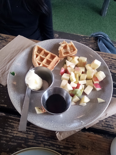Over the last year or two, I’ve been thoroughly questioning if I should even bother to walk over RHM. I’ve been convincing myself to support a business I used to LOVE and being almost consistently disappointed in some way or another. I adore many of the people who work there, very rarely have I received any snark, eye rolls, or dismissive behavior, but it does happen from time to time. Being someone who has worked in Hospitality in the past, I understand how stressful things can get, or how disappointed you can get when your product doesn’t meet the level or value it should have and you feel like you’re ripping people off. I’m not sure if this is something staff may worry about but I think product/value ratio might need to be revisited, and value appropriate substitutions for people who may not consume certain items. It might need to be discussed with staff so they know what to offer someone if an item is left off a plate. Let me preface that I understand that the restaurant menu is centered around pork, but even when I was vegan in my 20s, my needs were accommodated and the food still looked and tasted amazing. Yesterday morning, a little before 8:30am, my daughter and I stopped in while we were on our walk. I got my coffee and a delicious spinach feta croissant, she opted out of the typical pastry and asked for a breakfast plate. In the recent past, breakfast plates have had fruit, pancakes, egg, and bacon for $8. The portions were adequate for a kid, the quality of ingredients and presentation of the food fit the price, even without bacon (which we don’t consume). As a single parent, I absolutely appreciated the value of this plate. Since I knew it had been awhile since we had ordered the plate, I expected the plate to change. The current kids plate has 3 items, “Waffles,” bacon and seasonal fruit for $8. We ordered the plate without bacon and asked if we could substitute the bacon for extra waffles. I would assume this would make a good substitution, because I suspected the bacon was probably more expensive than batter for waffles. I was told that probably wasn’t possible, so I asked for extra fruit, which was granted. When we got the plate, it was two quarter pieces of A waffle, not “waffles” and what I would assume was an entire apple cubed with a few bits of kiwi. Firstly, as a parent I would recommend slicing the apple, then fanning the slices on the plate. Children are visual eaters, it’s easier for them to hold onto and the cubed apples are a choking hazard. As the paying participant, I would at least expect the plate to look appetizing, it did not. Blemishes and worm holes were not cut off the apple. It looked like something a teenage babysitter would prepare for a kid.