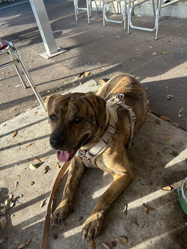 The moment we arrived, the bartenders lit up when they saw the pup. We were immediately greeted with water for us and a bowl for him. The patio is shaded, breezy, and well set up with fans. My dog stayed cool the entire time, even in the Florida heat. What really got me was the dog menu with actual unseasoned food options just for him. That kind of thoughtfulness is rare.