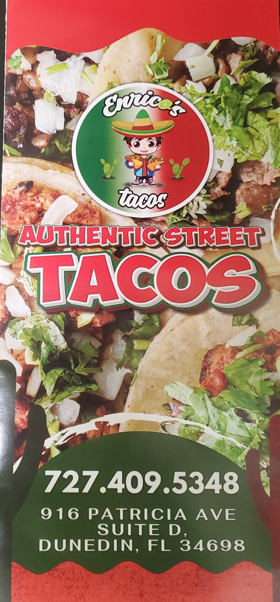 Hello friends, we were in the area and decided to try Enrico’s Tacos. Place is located on Dunedin Plaza with plenty of free parking. Location is a safe spot.