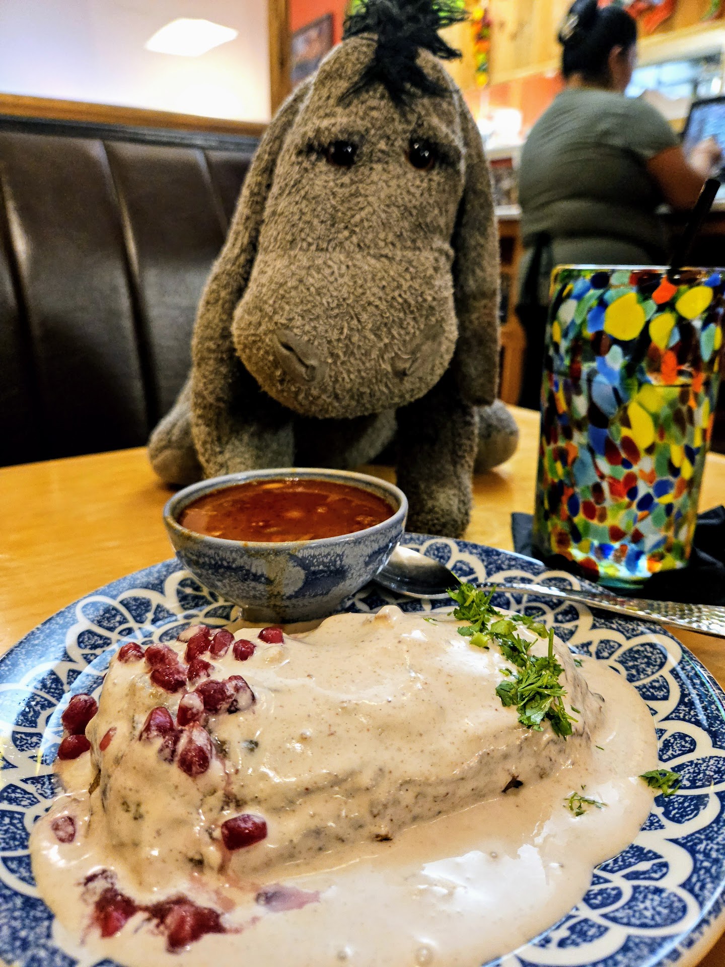 For the finale ordered the Chile En Nogada with Charro Beans. The charro beans were great. The Chile En Nogada is usually a favorite of mine when I see it on a menu. But here it was a miss. The flavor profile and texture was not balanced. The meat filing was too 'heavy' and too 'spiced' and the sauce had a sour curdled note. Not the well balanced, slightly sweet and creamy, yet light ground meat filled fresh pablano pepepr dish I love elsewhere. I'd not advise this one here.