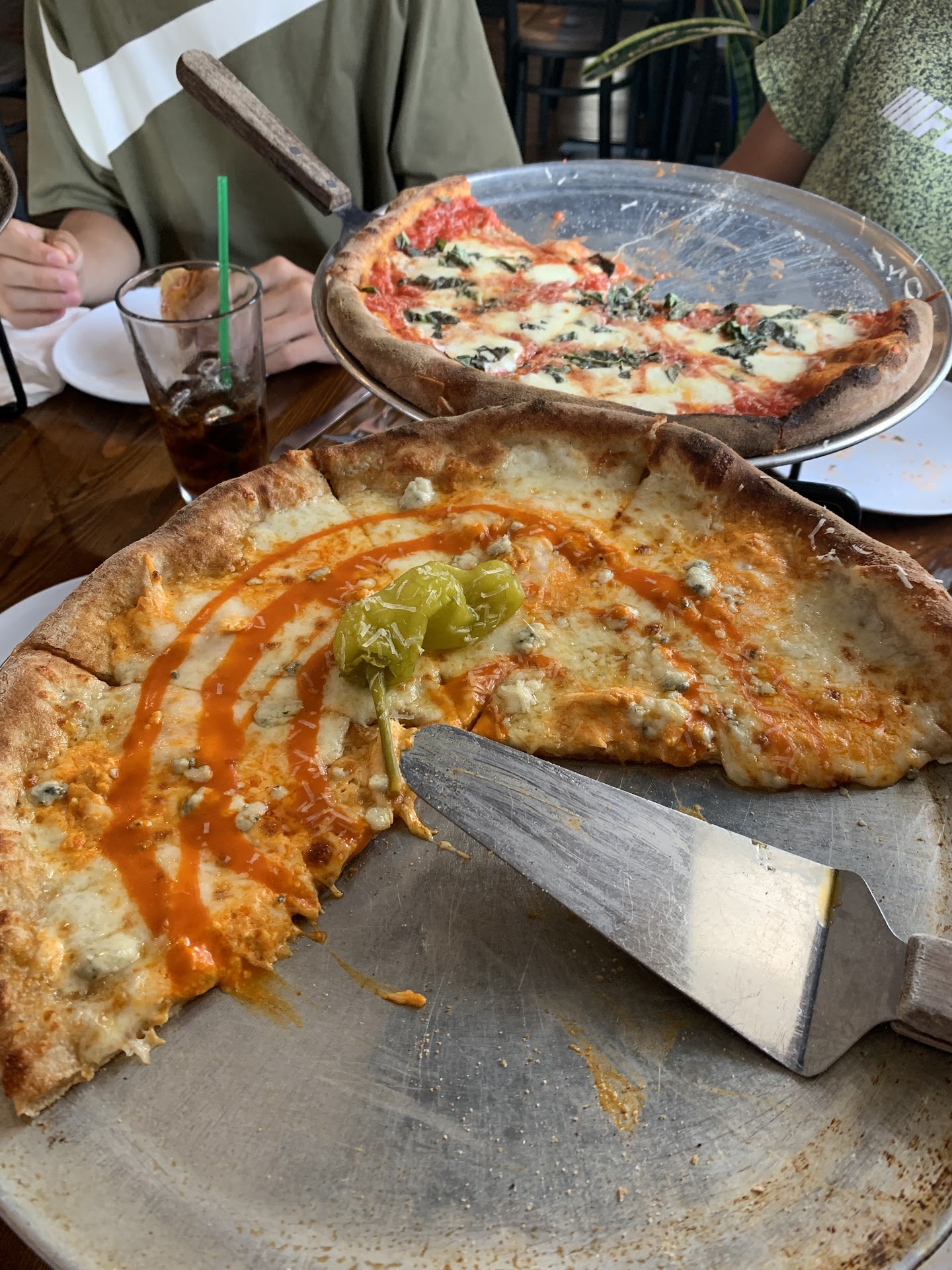 That said, no big deal we had wings to eat, and some butternut squash soup. Both delicious. Kendall left the first pizza to hold me over until the new one was made.