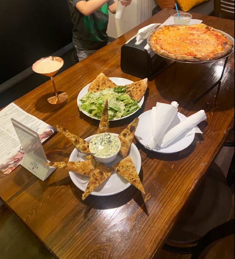 Pizza bread: which they serve with the salad and the artichoke dip. Definitely don’t think it was freshly made. But more like it was baked earlier in the day and was quite stale and hard.