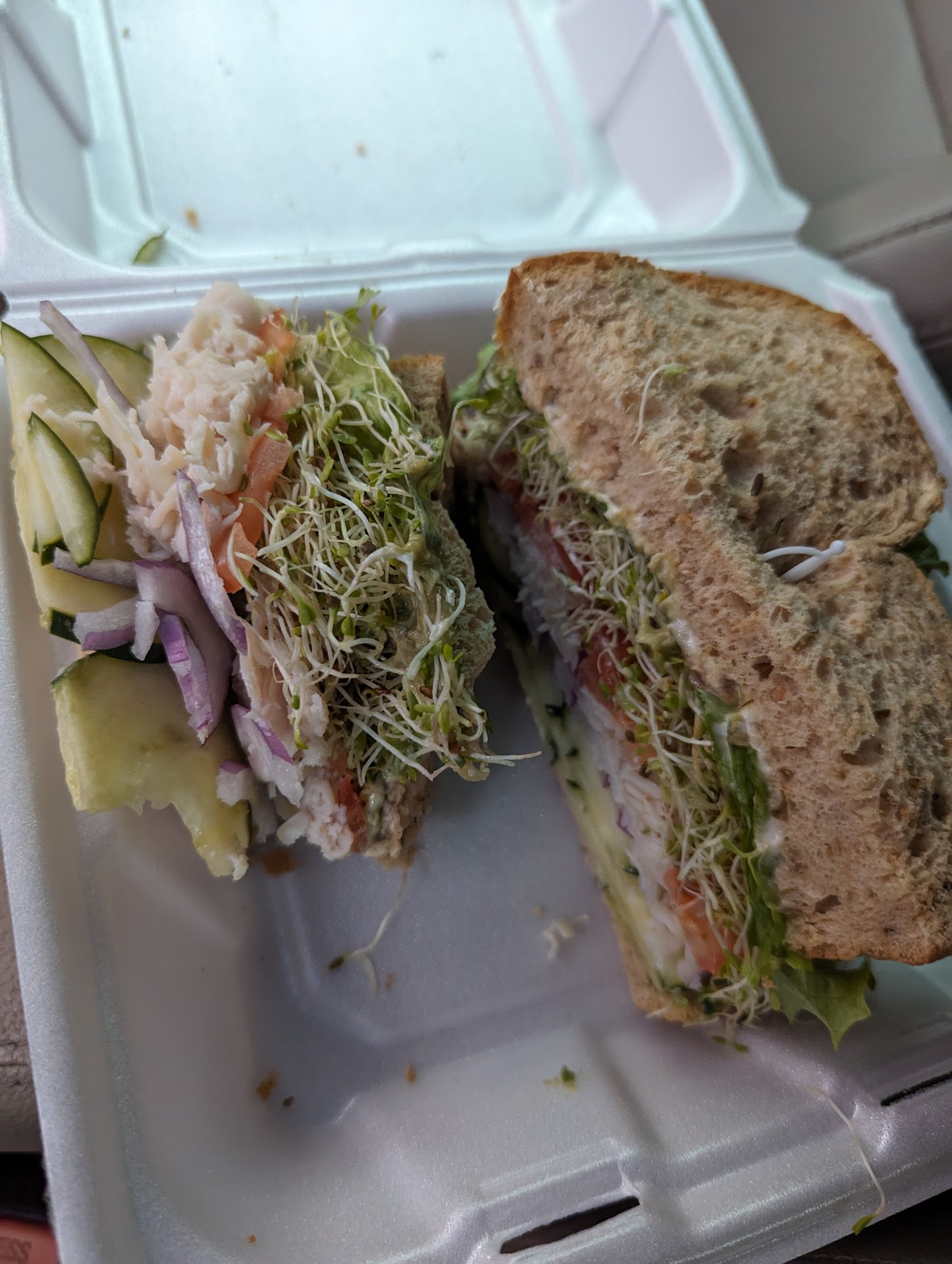 Update: I finally branched out and tried something new: Curried Tropical Chicken Salad. It was mouth-wateringly delicious. I told the chef that I normally get a Sunny Bird and asked about the Curry Chicken. She encouraged me to try a sample and said she'd hate for anyone to buy a sandwich they didn't like. Moral of this update: don't be afraid to branch out,...