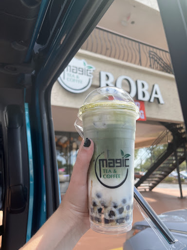 Read moremagic had a ton of options, great in-store but online ordering system, and lovely drinks from coffee to lemonades to fruit teas, etc! i wished i could try one of everything. my family and i tried the matcha cream latte (pictured), tropical coconut green tea, and the sunset in hibiscus. the sugar level we chose was honored and the fruit toppings (dragonfruit cubes, strawberries) were super enjoyable. the boba was pretty soft, but i still liked it. drinks were a little expensive but pretty on par with boba these days, so i canât blame it on the shop. i would definitely come back to magic tea and coffee again to try out more...