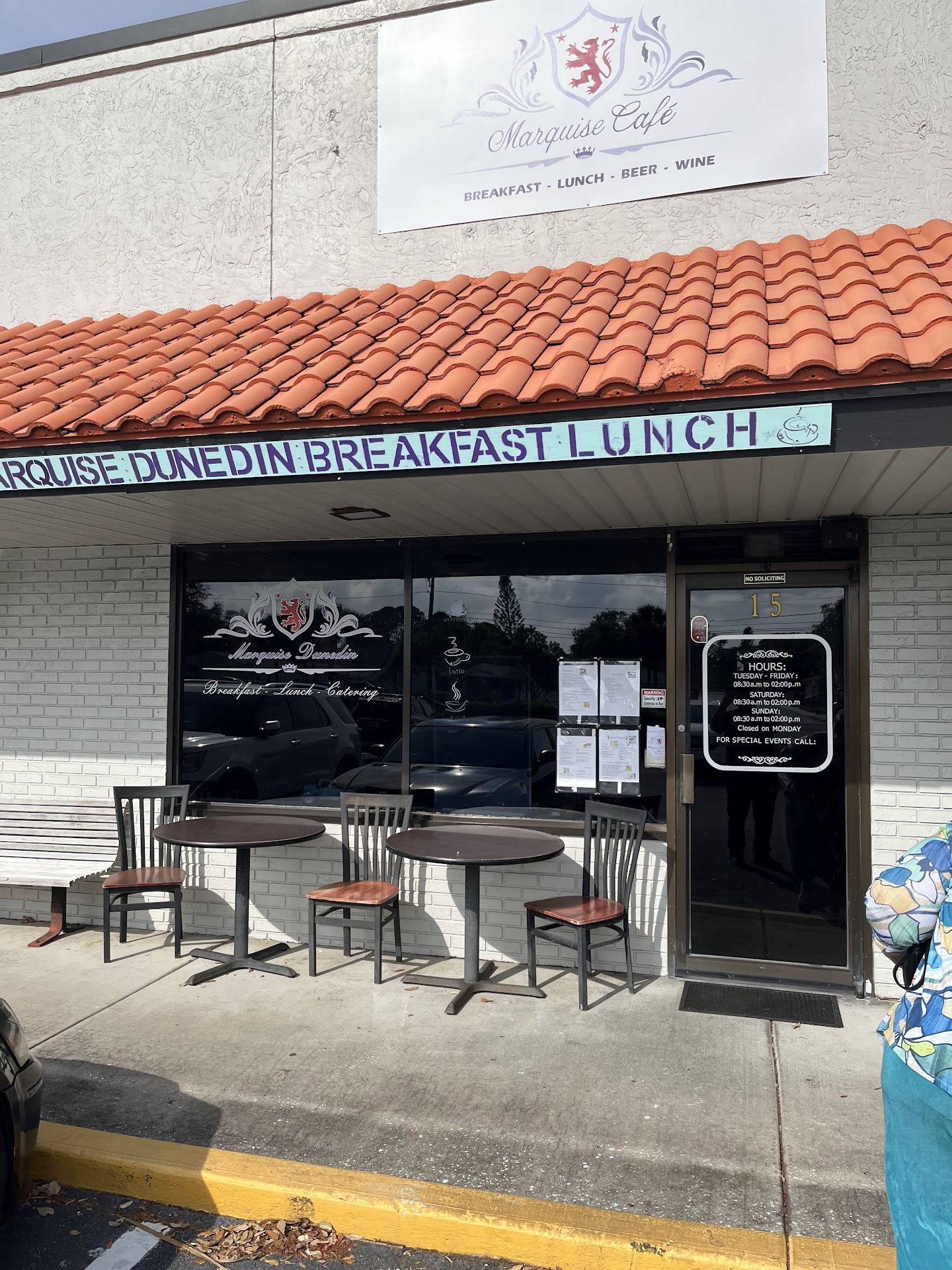 Out doing some errands in Dunedin and decided to check out places for brunch. Found Marquise and looked interesting. We found it via GPS but still almost missed it. It is a small cafe tucked behind a convenience store. This was about 10:20 on a Tuesday. It is a small but quaint cafe, only two tables were occupied, so seated right away.