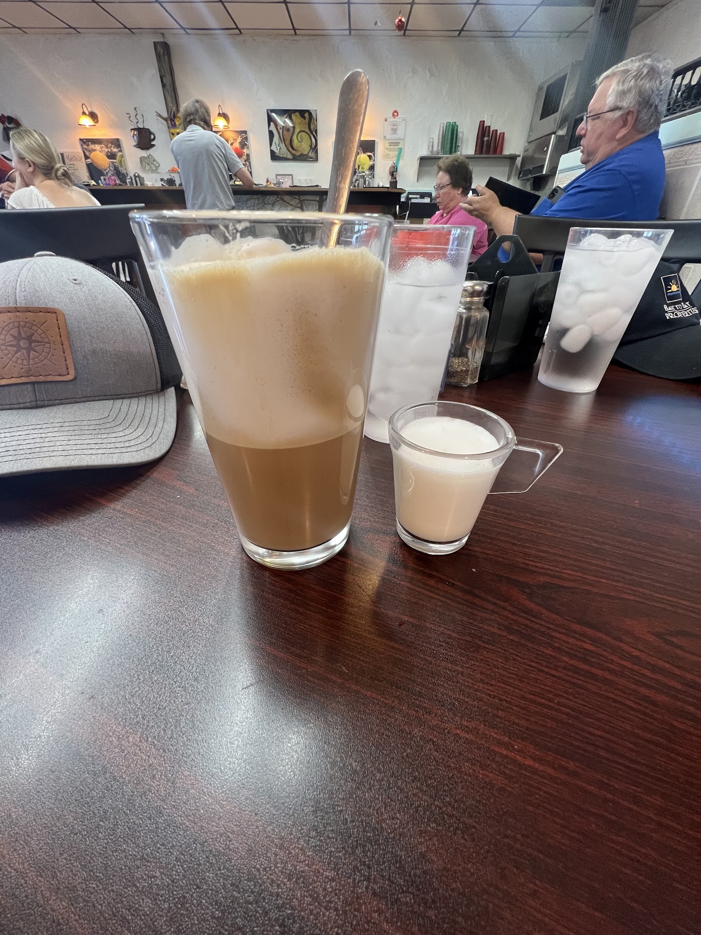 This French cafe gave us our latte/capuccino in pint glasses, which were incredibly sweet. The glasses were then refilled with regular coffee, which was very difficult to handle properly since the glasses themselves became very hot.