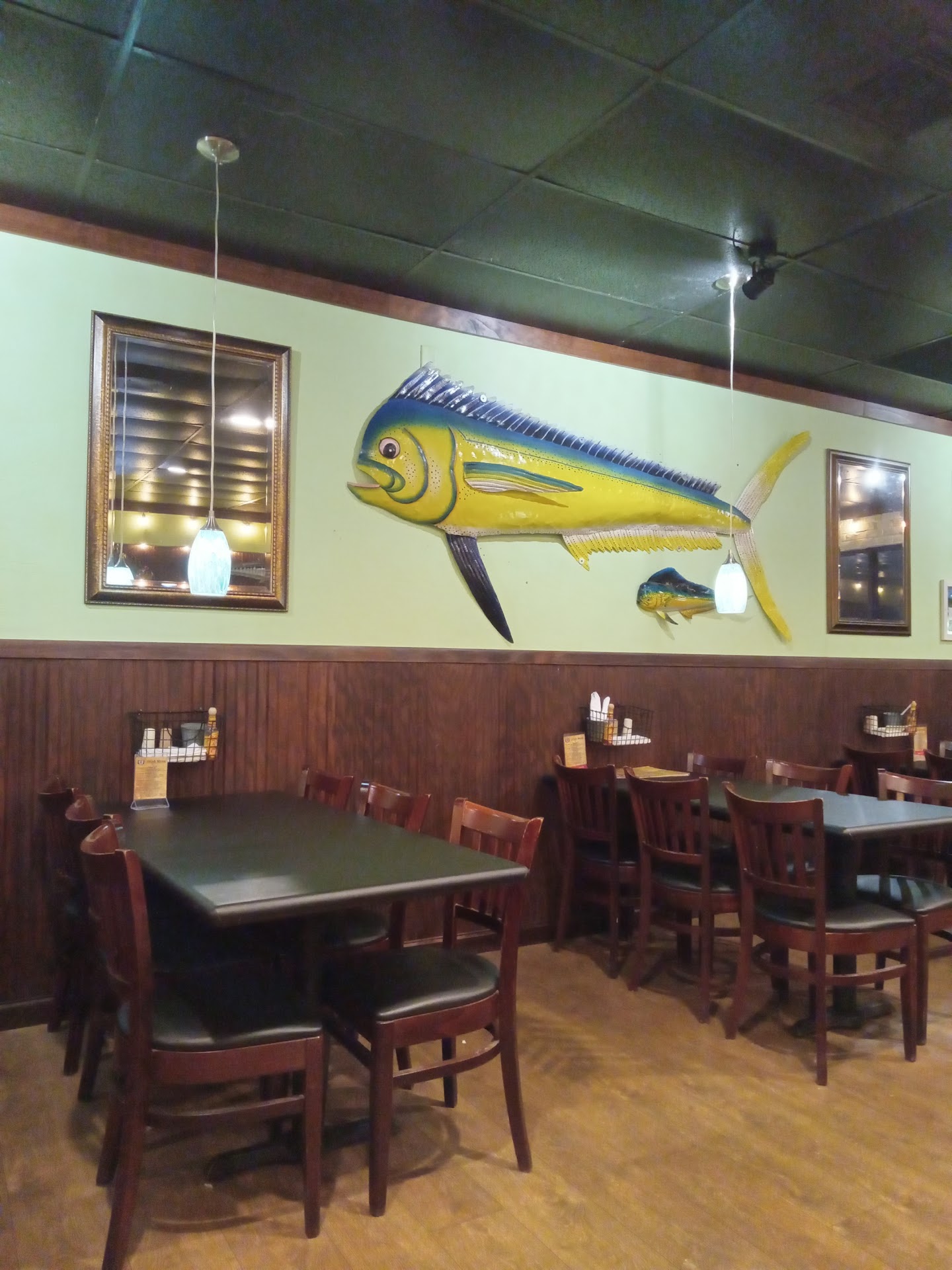 We tried the new Pineapple Jacks on Saturday night. We had a reservation, but one was not needed as it was not very crowded. Maybe because they have just opened recently and people don’t know about it yet? But let me tell you it was excellent! I hope this review entices readers to try it out ! The atmosphere in the restaurant is welcoming yet very Florida style. Nothing fancy. We were seated right away and the service was excellent as the waitress took our drink orders quickly and brought them over very quickly as well. We had the fried zucchini appetizer, as well as the potsticker appetizer, which was a special that night. Both were very tasty and delicious! The horseradish sauce served with the fried zucchini is so good that we actually had the waitress bring more for the rest of our meal! For dinner, the seafood platter did not disappoint. Delicious fried clams, hush puppies, fries, shrimp, scallops, and Mahi. All piping hot and so so good! You can have your seafood items, grilled or fried. We chose to have them grilled except for the clam strips and hush puppies. We also had the grilled salmon, which was super fresh and delicious. It came with rice and broccoli. The seafood platter is very large and two of us shared the two entrées and we literally took almost all the salmon home because the seafood platter was so big that it’s almost enough for two people, but we were happy to have leftovers for the next day. There is a large bar area that opens to the outside and a small outdoor section with high top tables for eating or drinking when the weather is nice - like NOW! Definitely give this place a try. I’d love to have them stay a while! ...