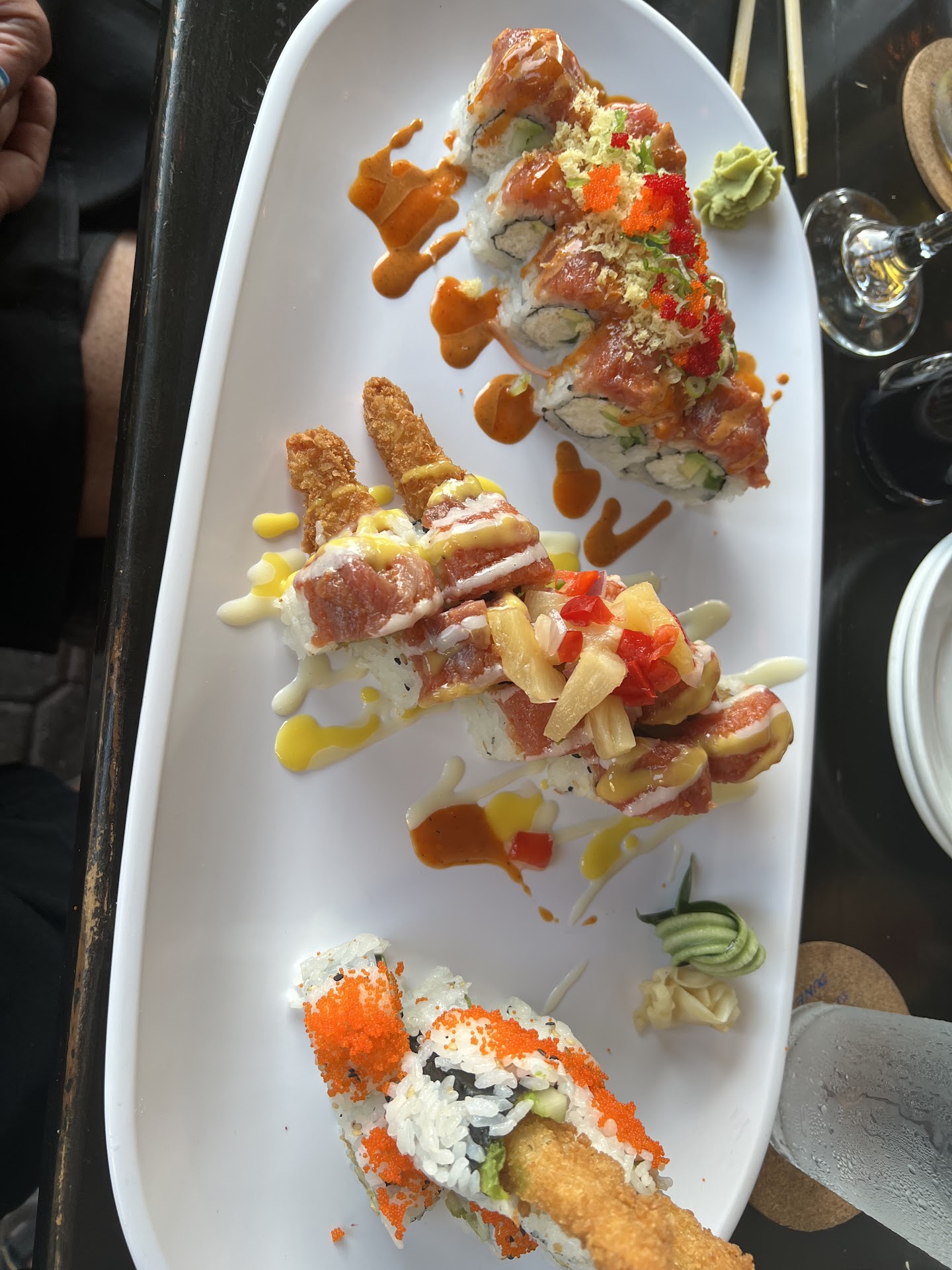 We ordered the Caesar salad which is $10 for a very small plate of salad with just dressing. This was very disappointing! We ordered three rolls and the average prices for their rolls is between $16 to $24. We ordered the firecracker roll, alcohol boho, and Mexican roll.