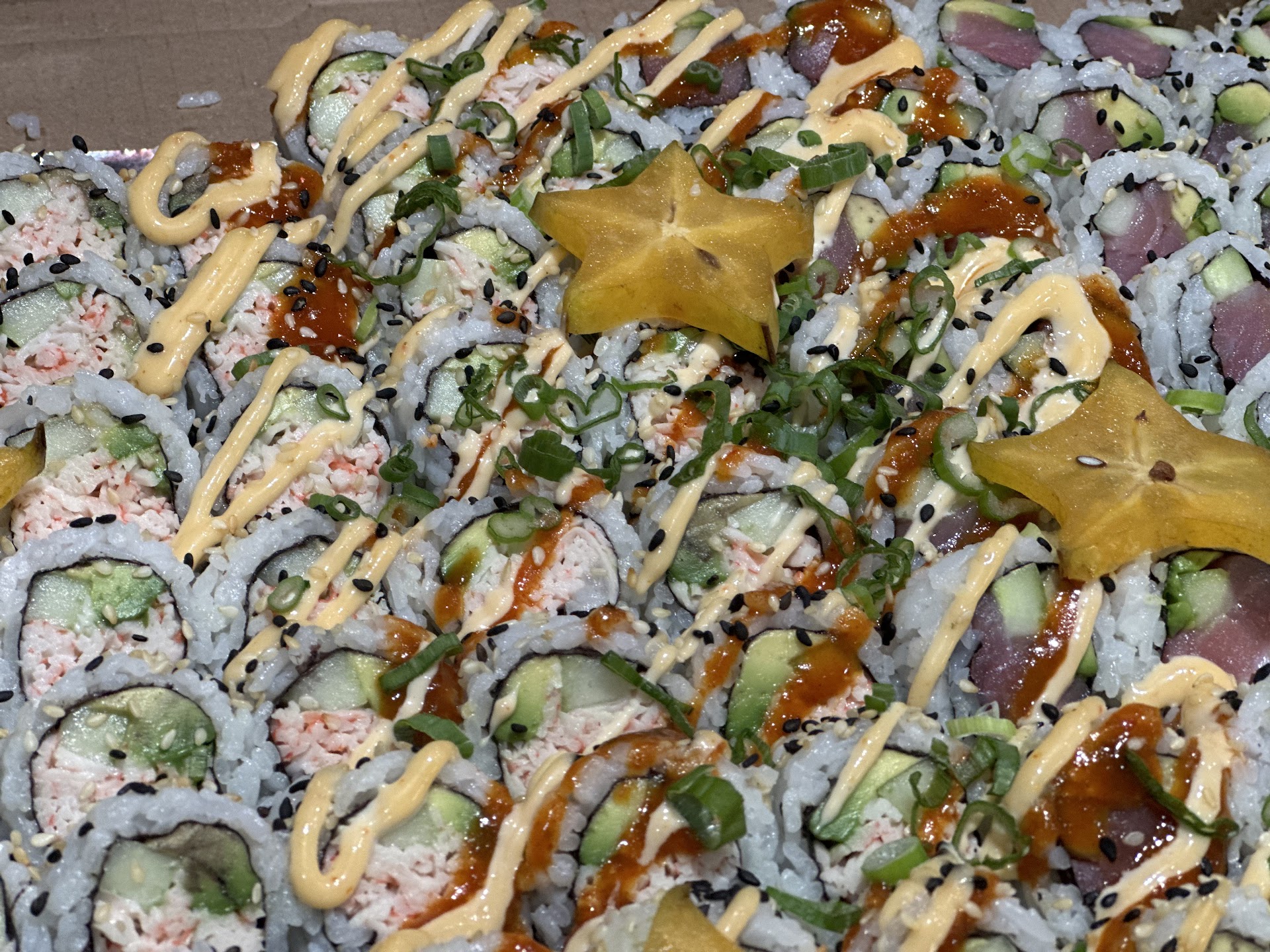 I order a custom roll off their build your own sushi menu as did my partner, and then after waiting about 20 minutes we were served. Upon looking at the sushi after eating parts of it, I noticed a different meat texture from the fish that was ordered in the roll. Upon further inspection the order was topped with Krab stick under all the crunchy bits and sauce. The menu made zero mention of this being in the selected topping (we both got this exact customization topper for our rolls). Its absence from the menu is especially bizarre because of the fact they ask about allergies from the get go.
