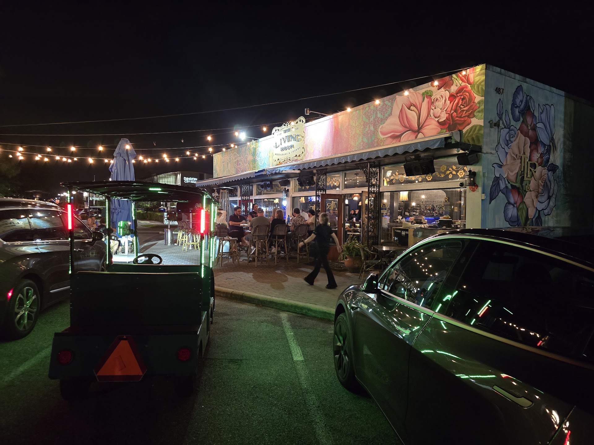 Read moreWe could not get a table outside, so were seated inside. The chairs were padded and comfy. Rather 60's in style. I had a draft beer and my love had a coke. His arrived before mine. I ordered the mushroom gnocchi and added shrimp, which much to my delight arrived blackened. He had the Bobby Boucher, which is basically shrimp and crayfish in a cajun alfredo with linguine. I almost ordered that as it is what I was searching for on menus earlier that day... Shrimp in a spicy cream sauce with pasta! But say mushrooms and I spin the other way! The gnocchi were pillows of perfectly cooked goodness with three kinds of mushrooms and blistered tomatoes in a cream sauce with my shrimp on the side on the same plate and since I had wanted something with some spice I was delighted that they were blackened. That bit of spice put this dish over the top for me! We both were so delighted with our meals. It would have been nice if my love could get a coke refill but the waiter did everything but attend to us. I almost called the front desk from our table to request a refill. I guess when 20% gratuity is already tacked on some staff can work at a different pace or be less than attentive since you are at their mercy and will be tipping well never the less. The only thing to take those two dishes to perfect would be to serve with some lovely bread to mop up the delicious sauces. We'll be back but I will call the front desk the next time our server is that indifferent to waiting on us. Oh and Mondays give a frontline discount however only nurses are mentioned for in hospital workers. Rather selective since SO many more of us take a beating daily in ERs and TRAUMA centers than just nurses. But police, fire and first responders are also included along with...