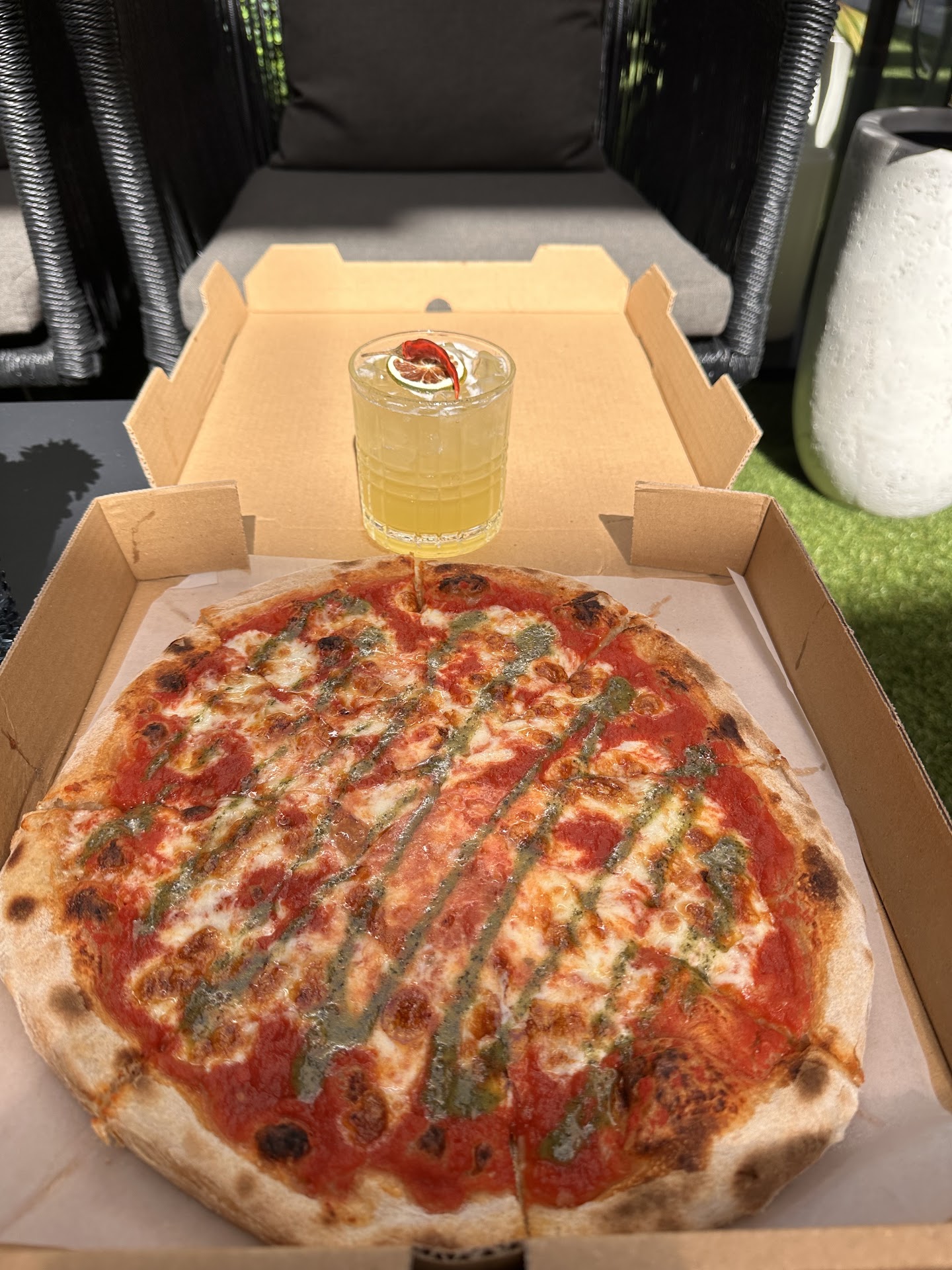 Ā Ā Ā Read moreWell, I was excited to check this place out after seeing on the news. prices are reasonable, I was excited for the vegan place however.... it's not the best quality of products they use, and of all the chips in the world ... you get a bag of lays chips with your frozen vegan burger. not sure why I was expecting like maybe in-house made vegan burgers. so that was a no go.... but THEN JUST FYI, DO NOT TAKE YOUR KIDS HERE. We came with our kids because we love these places where we as parents can still enjoy an adult beverage in a chill environment while the kids are able to also not be cramped inside a restaurant. the place is VERY cute.... but 5 seconds after the kids finished eating their $75.00 worth of food (which btw was delicious from the Italian place) we were asked to leave because our children were not sitting like statues. We barely finished our drink and hadn't even ordered yet! So, my guess is that's it's more of a cocktail chill adulting only vibe and not a bring your kids and everyone chills kind of vibe. I think it was the Huli bowl guy that came out and said "sorry guys they want y'all to leave because of your kids" that did it for me. like, hang a sign please parking was not the best, my guess is they figure everyone will Uber there since it's cocktails...